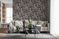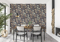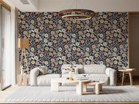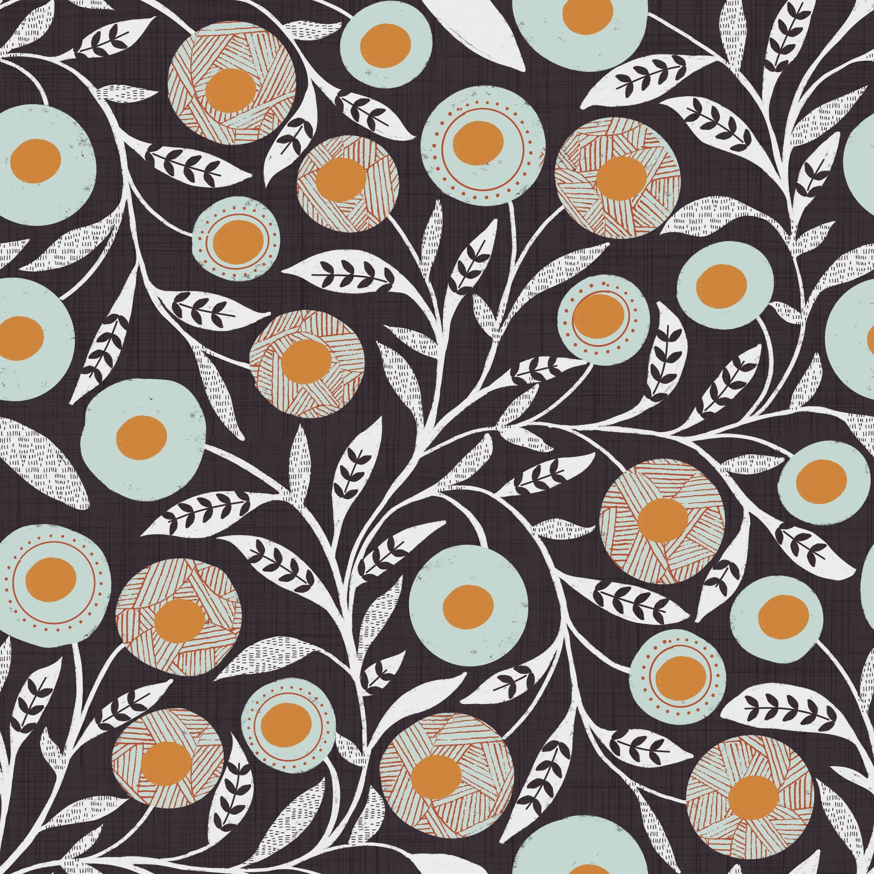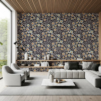 Lin chaud et chaleureux à motifs floraux scandinaves et folk - Papier peint botanique artisanal