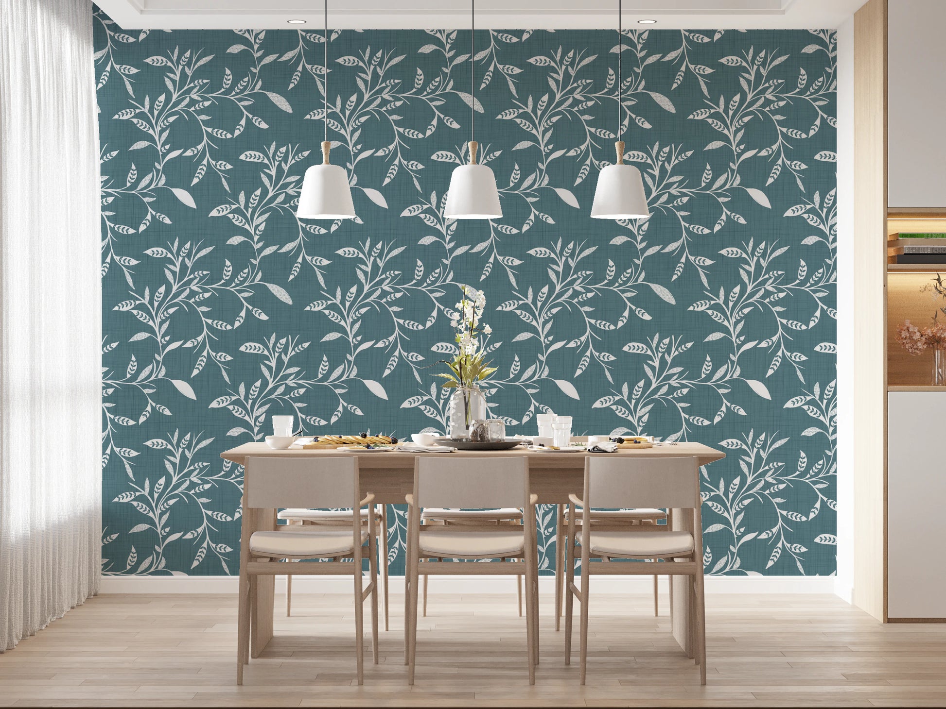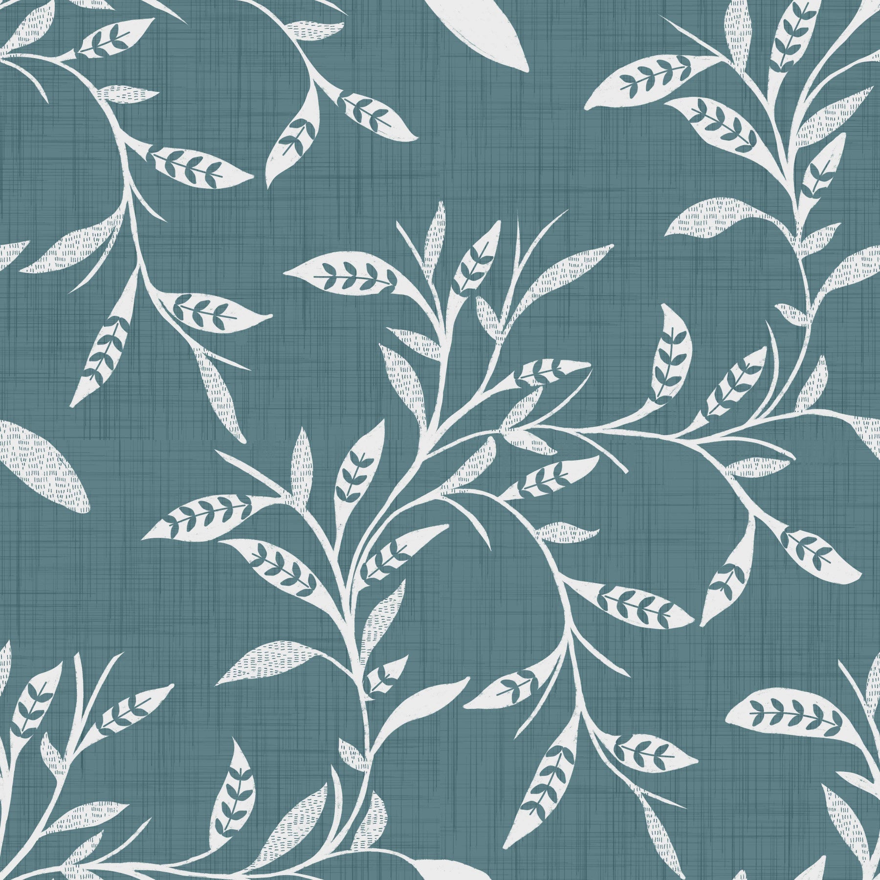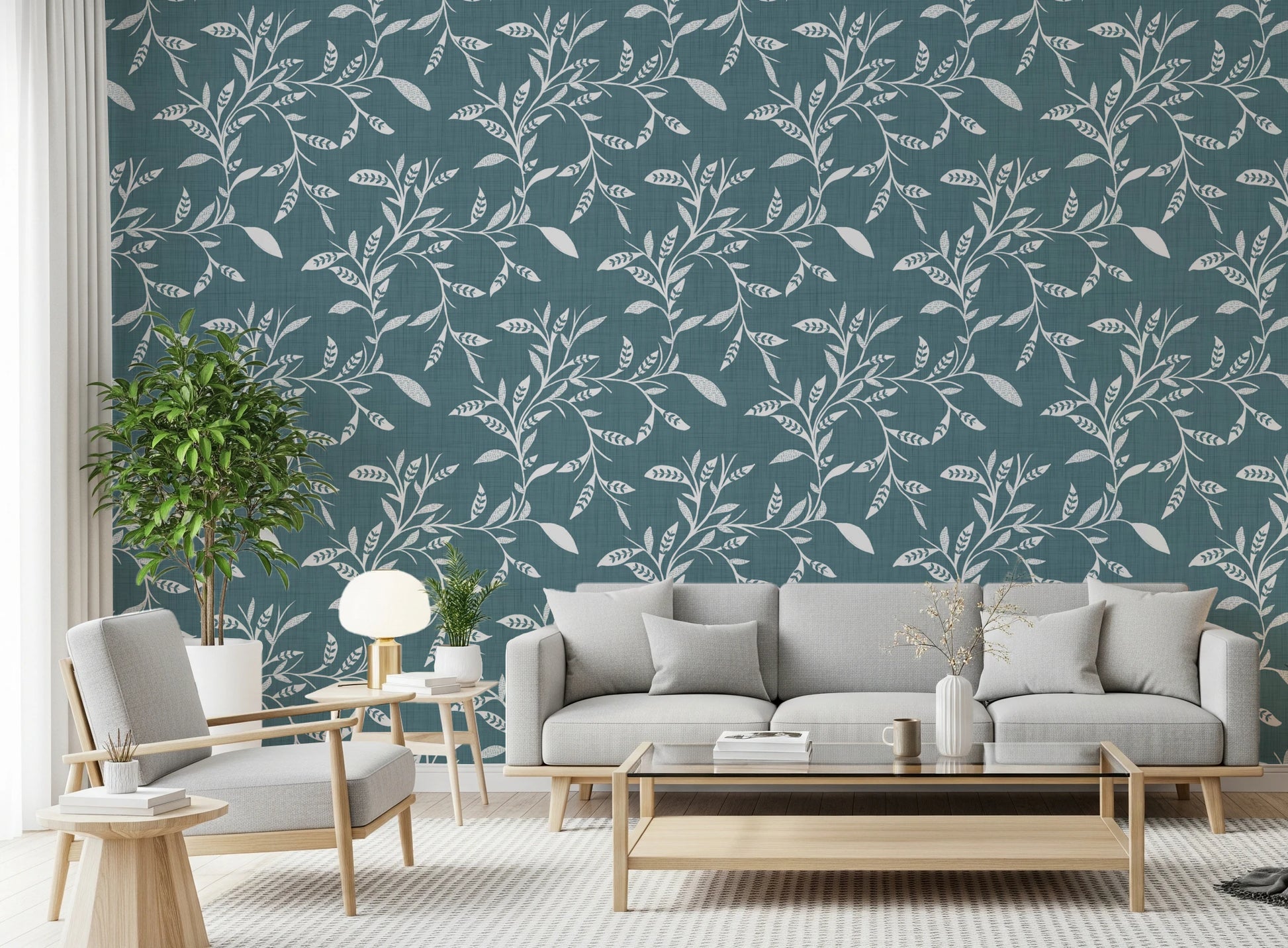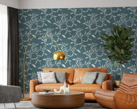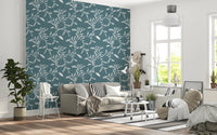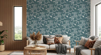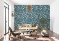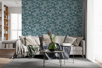 Papier peint Craft Blender à motif de feuilles et de vignes scandinaves, bleu et gris nordiques