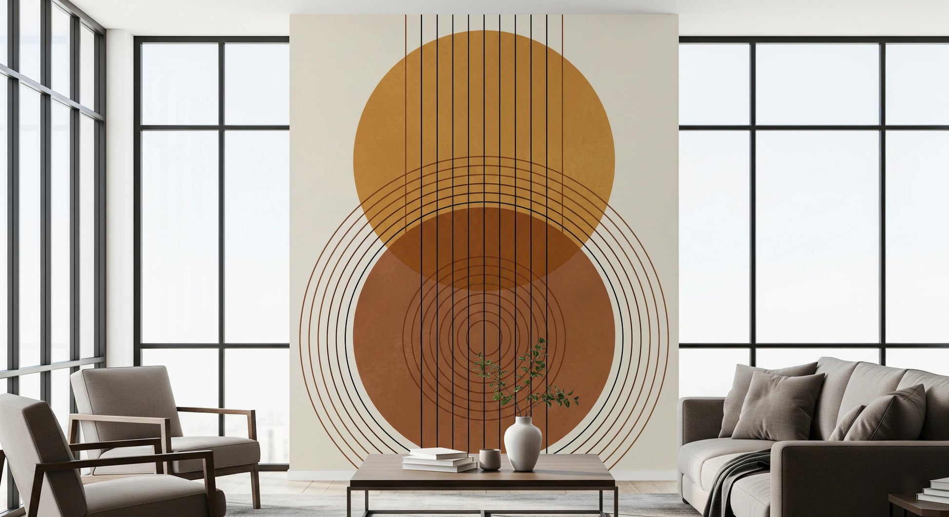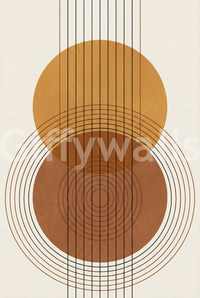 Apportez une touche d'art minimaliste à votre intérieur grâce à ce motif géométrique captivant. Deux cercles superposés aux tons chauds et naturels attirent le regard, traversés par des lignes verticales épurées et des courbes rythmées. Le fond neutre met en valeur les riches nuances de brun et de beige, créant une esthétique à la fois apaisante et élégante. Ce papier peint rehausse l'ambiance de n'importe quelle pièce. Installez-le dans votre salon, votre chambre ou votre bureau pour une décoration sophistiquée. Laissez sa composition simple, mais saisissante, créer un intérêt visuel et s'harmoniser avec votre mobilier. Ce motif s'intègre parfaitement dans les intérieurs contemporains, scandinaves ou minimalistes. Il apporte profondeur et caractère à votre maison.