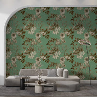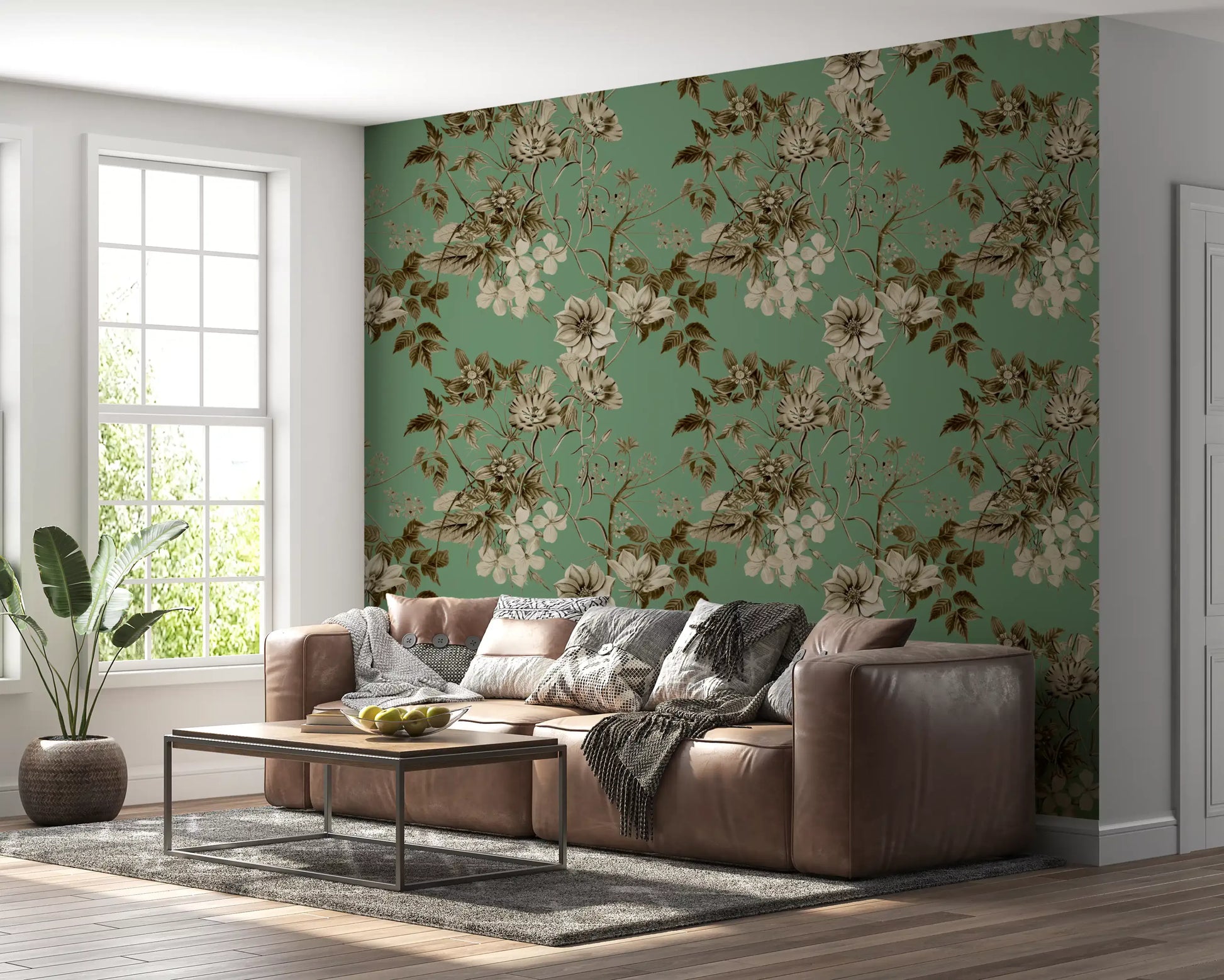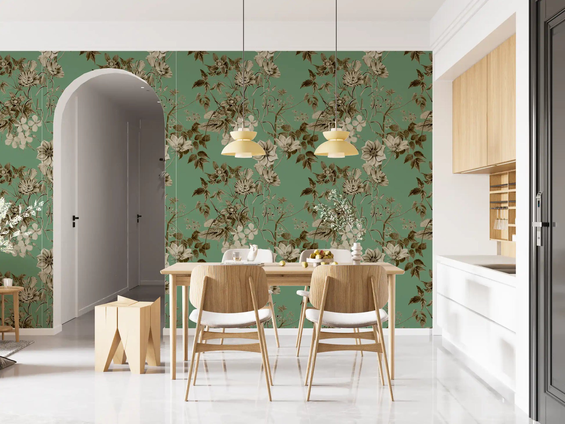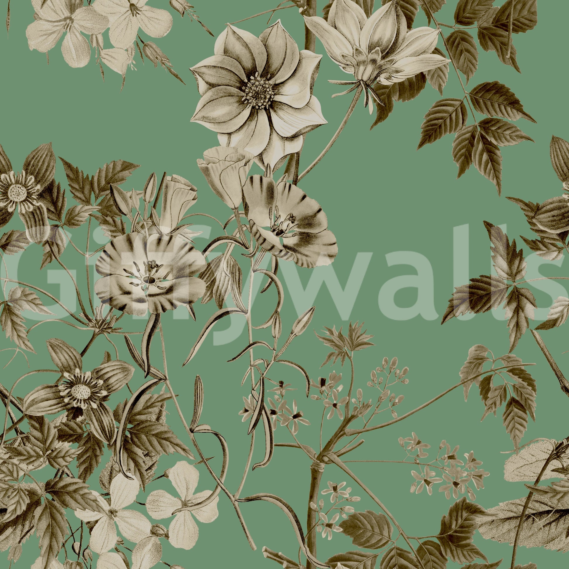 Sublimez votre décoration intérieure avec ce papier peint captivant pour murs, présentant un motif botanique intemporel. Des motifs floraux finement gravés en sépia et beige ainsi que des vignes feuillues complexes contrastent élégamment avec un fond vert jade vibrant. Ce design détaillé dégage un charme classique, mettant en valeur l’art minutieux des illustrations botaniques vintage. Il offre une esthétique sophistiquée, rehaussant sans effort les ambiances formelles comme décontractées. Installez ce papier peint saisissant dans une chambre paisible, une salle à manger distinguée ou un bureau accueillant. La base verte riche apporte une sensation naturelle et ancrée, tandis que la flore détaillée introduit une texture organique et un sens raffiné de l’histoire. Il crée une atmosphère distinguée, enrichissant votre espace d’une élégance botanique.