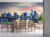 Transformez vos espaces de vie avec ce papier peint captivant. Son motif met en scène un paysage urbain époustouflant illuminé au crépuscule, évoquant une élégance citadine. Des bleus frais et des dorés chauds s'entremêlent pour créer un récit visuel fascinant. Un pont traverse la scène, reliant les silhouettes architecturales lumineuses. Idéal pour un salon, un bureau ou un couloir, ce papier peint apporte profondeur et modernité à n'importe quelle pièce. Il confère une touche de grandeur et d'intérêt visuel qui captive et sublime les intérieurs modernes.