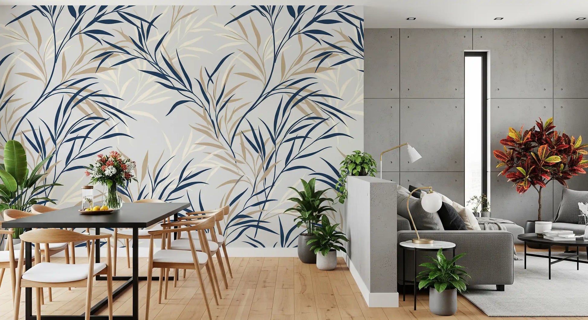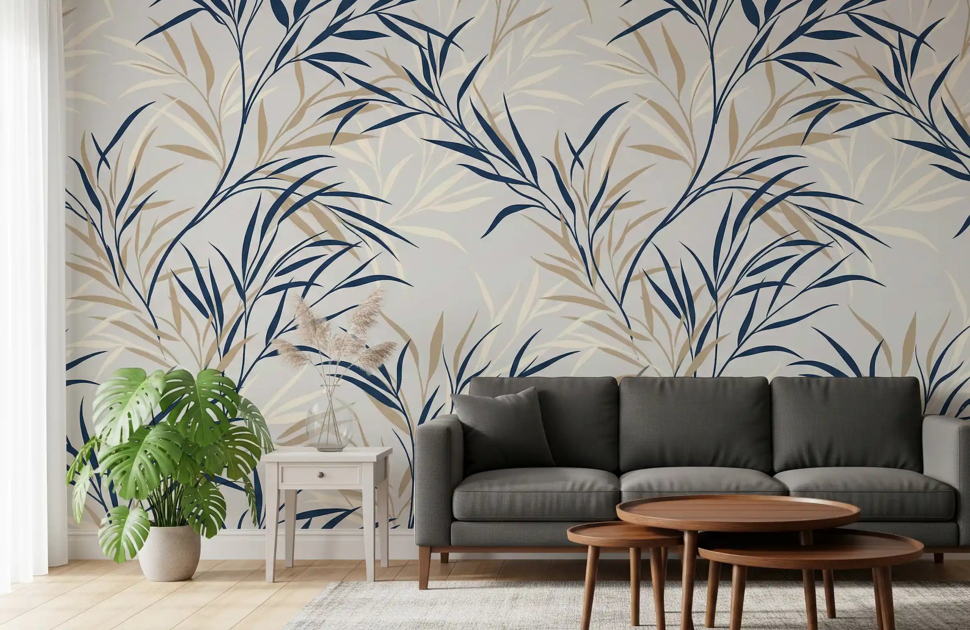 Découvrez un motif botanique raffiné avec ce papier peint d'exception. De fines branches de saule, d'un bleu marine profond, s'entrelacent avec élégance à de subtiles touches de beige, le tout sur un fond gris clair apaisant. Ce motif organique et minimaliste offre une impression de mouvement gracieux et de sérénité naturelle, transformant n'importe quel espace en un havre de paix. La palette de couleurs raffinée sublime les salons, les chambres et les salles à manger, leur apportant profondeur et ambiance sereine. Elle s'harmonise parfaitement avec les styles d'intérieur modernes, scandinaves ou classiques, créant un environnement accueillant et visuellement apaisant. Ce design unique rehausse subtilement l'esthétique de votre maison grâce à son charme botanique contemporain.