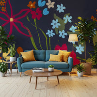 Apportez la fraîcheur de l'été dans votre intérieur avec cette décoration murale florale pleine de vie. « Été fleuri joyeux » met en scène une multitude de fleurs peintes à la main dans une palette vibrante. Imaginez la sensation de prairies ensoleillées débordantes de vie. Des rouges éclatants, des jaunes ensoleillés, des bleus ciel et des oranges lumineux dansent sur un fond profond, créant un contraste saisissant. Chaque fleur est rendue par des coups de pinceau expressifs, conférant à l'œuvre une qualité brute et artistique. Ce design captivant transforme n'importe quelle pièce en un havre de paix joyeux, évoquant l'insouciance et la chaleur d'un jardin d'été. Bien plus qu'une simple décoration, c'est une explosion de bonheur pour vos murs.