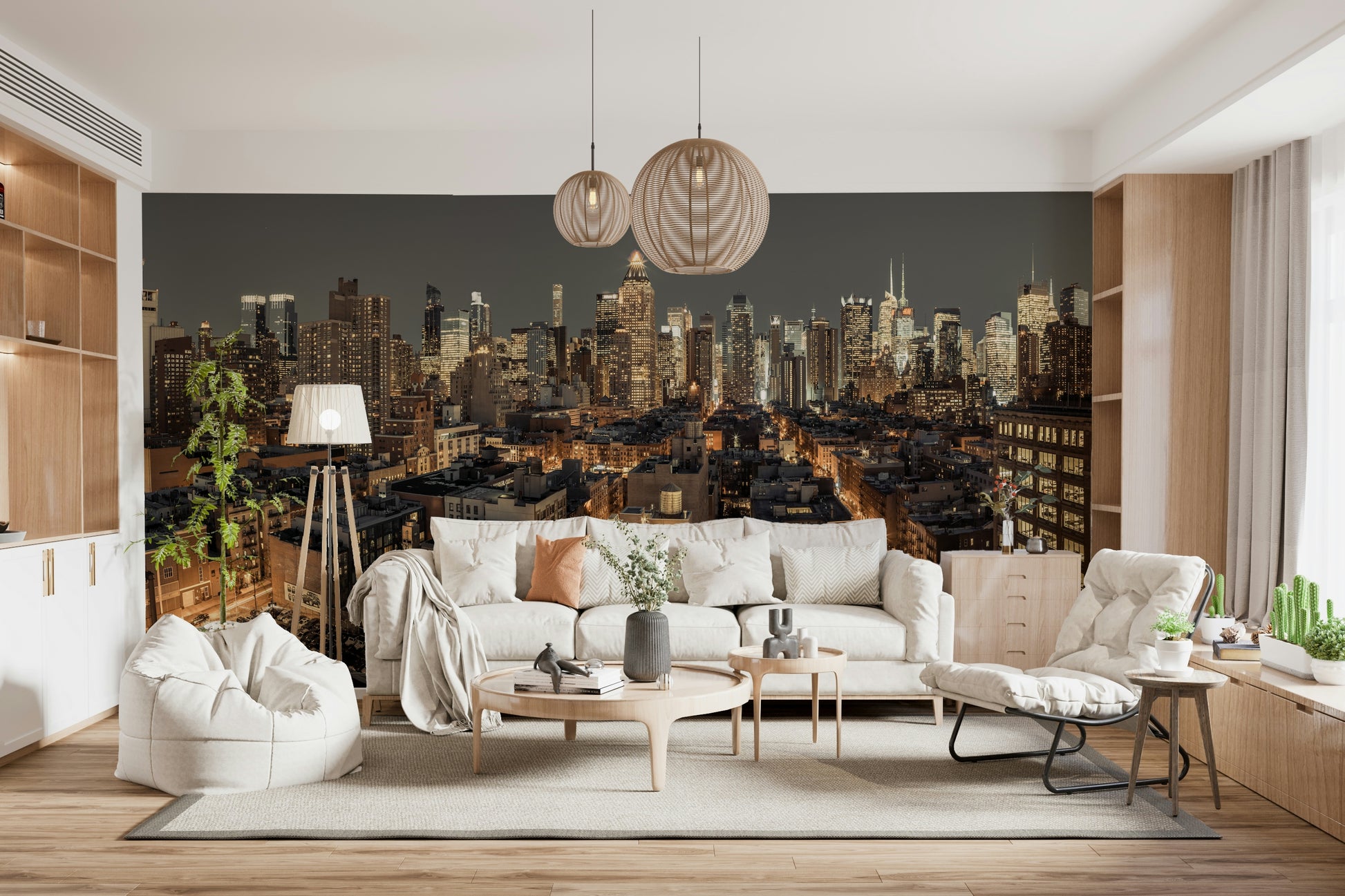 Transformez vos espaces de vie avec le papier peint mural « Crépuscule urbain », un panorama saisissant d'un centre-ville au crépuscule. Baignée de tons chauds, la silhouette emblématique de la ville crée un mur d'accent captivant qui sublimera vos salons, bureaux ou salles à manger. Les détails minutieux des bâtiments et le doux dégradé du ciel apportent une touche sophistiquée et citadine à n'importe quelle pièce. Admirez la beauté époustouflante d'une ville la nuit, jour après jour. Ce motif crée de la profondeur et un intérêt visuel, faisant de vos murs un élément central de votre décoration intérieure.