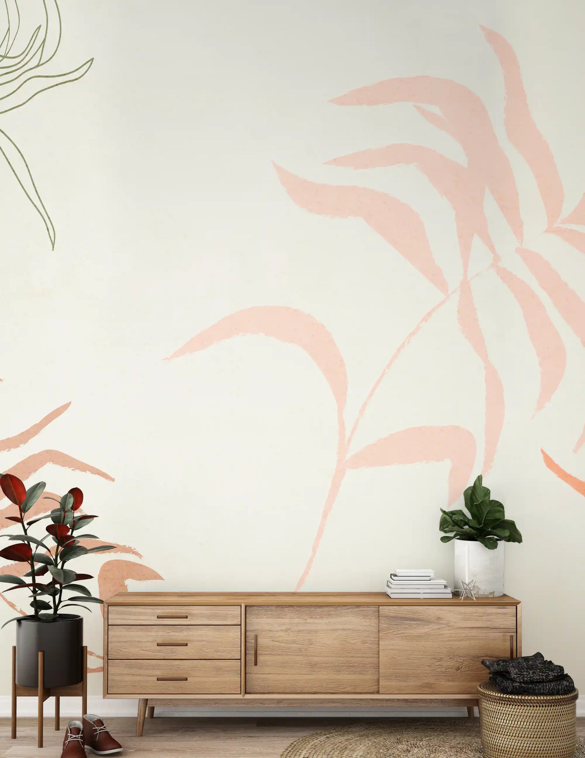 Transformez votre espace de vie avec ce papier peint captivant pour murs, présentant un motif botanique abstrait. Des coups de pinceau délicats dessinent des frondes élégantes dans des tons doux de vert, rose poudré et corail chaud, sur un fond crème apaisant. Ce motif élégant apporte une touche organique et moderne à toute pièce, offrant une nouvelle perspective sur les éléments naturels. Son style minimaliste s’harmonise parfaitement avec des intérieurs contemporains ou bohèmes. Posez ce papier peint dans un salon, une chambre ou une entrée pour créer un mur d’accent serein. La palette de couleurs douce favorise la détente et ajoute une touche de sophistication naturelle, rehaussant l’esthétique générale de la pièce avec un charme subtil et une touche artistique. Ce design sublime sans effort tout intérieur, créant un sanctuaire paisible.