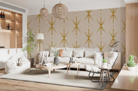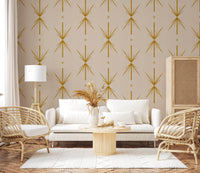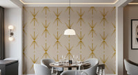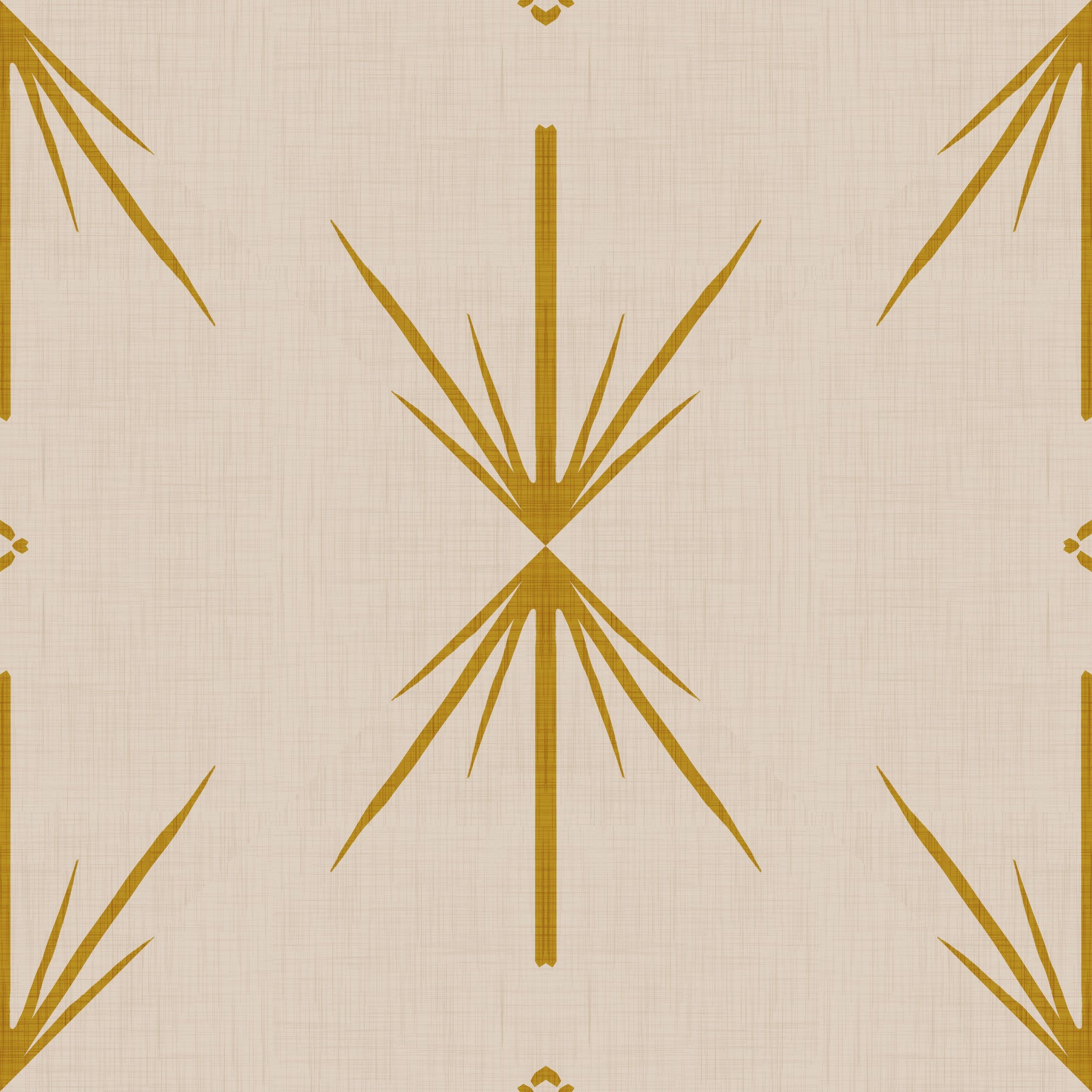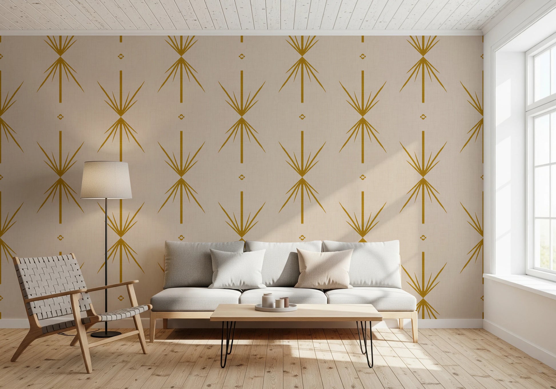 Papier peint moutarde à motif d'étoile atomique en croix, style moderne du milieu du siècle