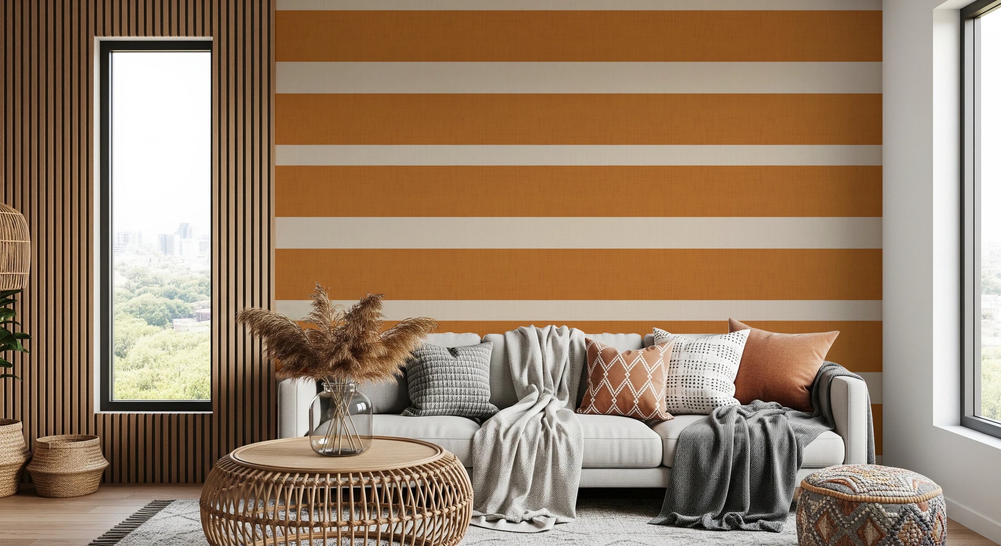 Papier peint moderne à rayures horizontales couleur crème terracotta