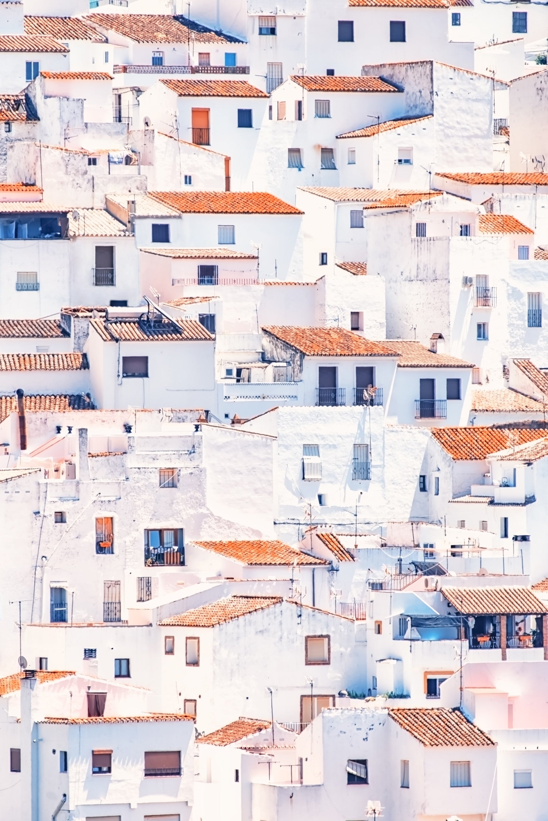 Sublimez votre intérieur avec ce papier peint vibrant, représentant un paysage urbain espagnol baigné de soleil. Des bâtiments blancs aux toits de tuiles dévalent le cadre, créant un motif texturé et dynamique. Ce motif utilise une palette chaude et lumineuse, dominée par le blanc, l'orange et le bleu. Parfaitement adapté à une salle à manger, une cuisine ou un bureau, ce papier peint évoque le voyage et une atmosphère chaleureuse. Sa composition complexe met en valeur tout intérieur, y apportant une touche artistique et une richesse architecturale.