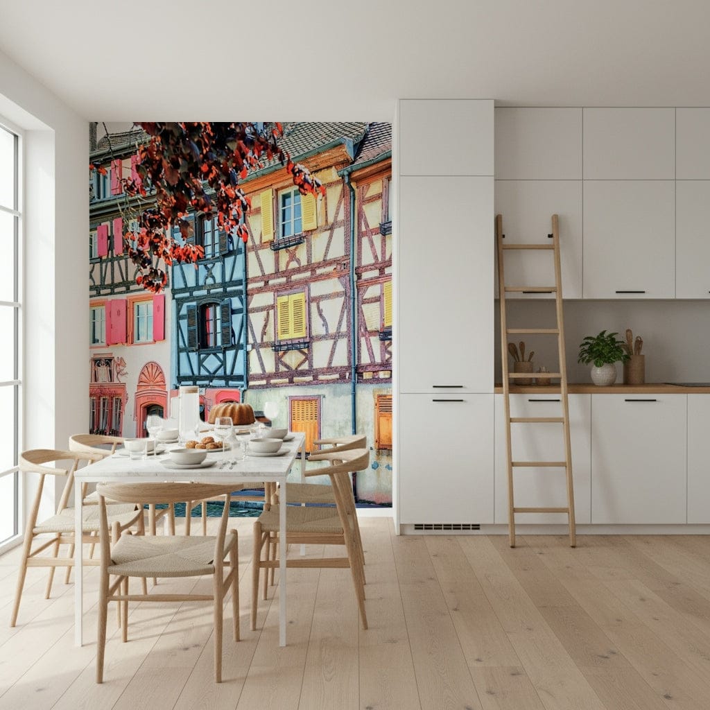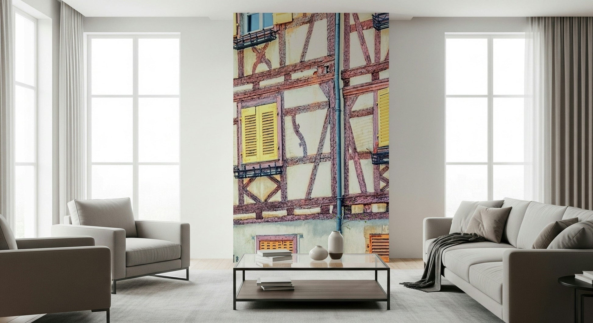 Apportez une touche vintage et enchanteresse à votre intérieur grâce à ce papier peint unique. Son motif représente une multitude de maisons à colombages aux volets peints dans des tons joyeux de rose, de jaune et de bleu, évoquant l'atmosphère d'un vieux village européen. Idéal pour une chambre cosy, une entrée accueillante ou un salon élégant, ce papier peint insuffle une ambiance chaleureuse et chargée d'histoire. Son style vintage et ses couleurs vibrantes s'harmonisent aussi bien avec un mobilier moderne que classique, créant un point focal captivant et sublimant l'atmosphère de la pièce.