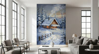 Fresque murale représentant une cabane d'hiver