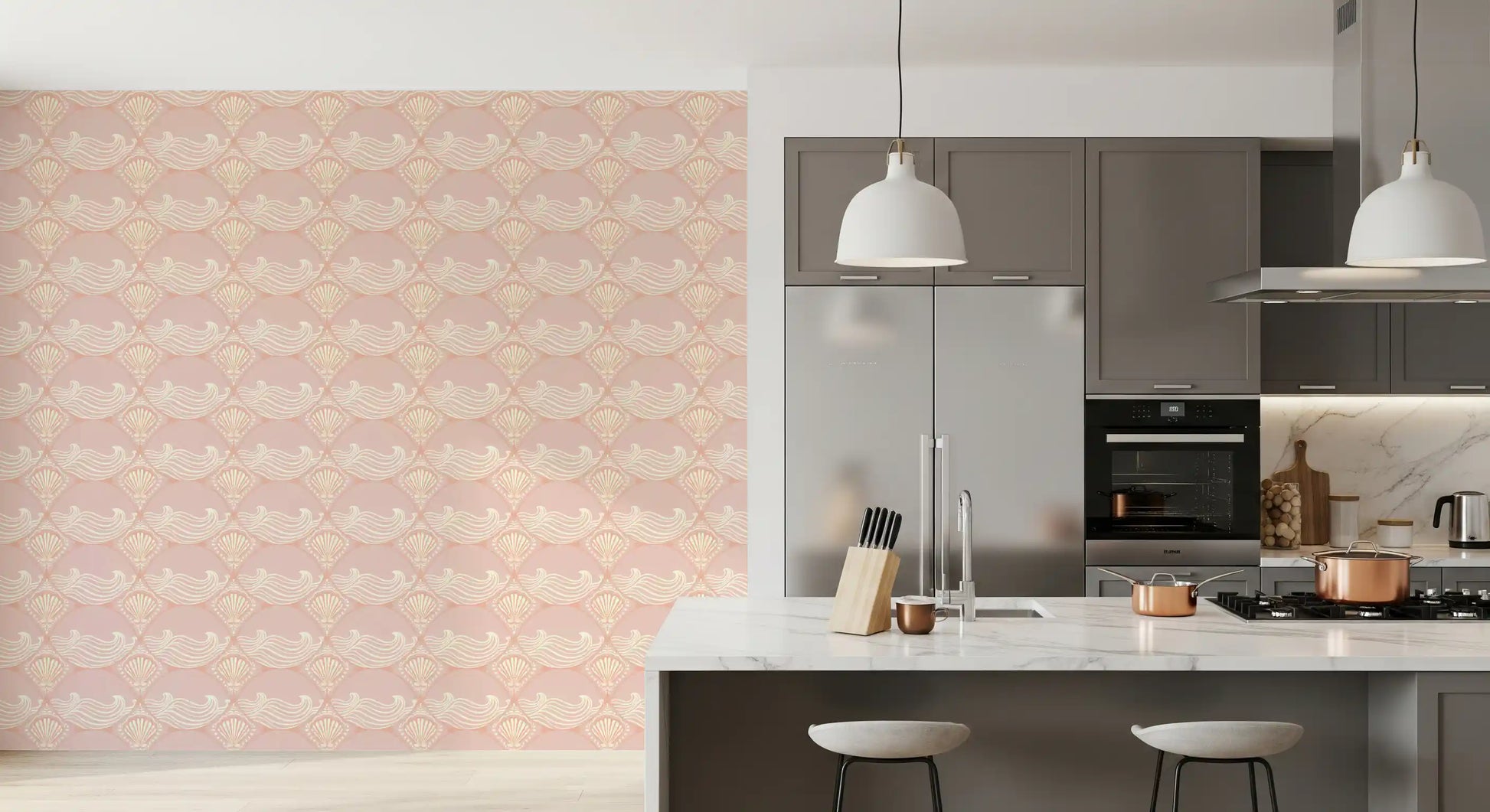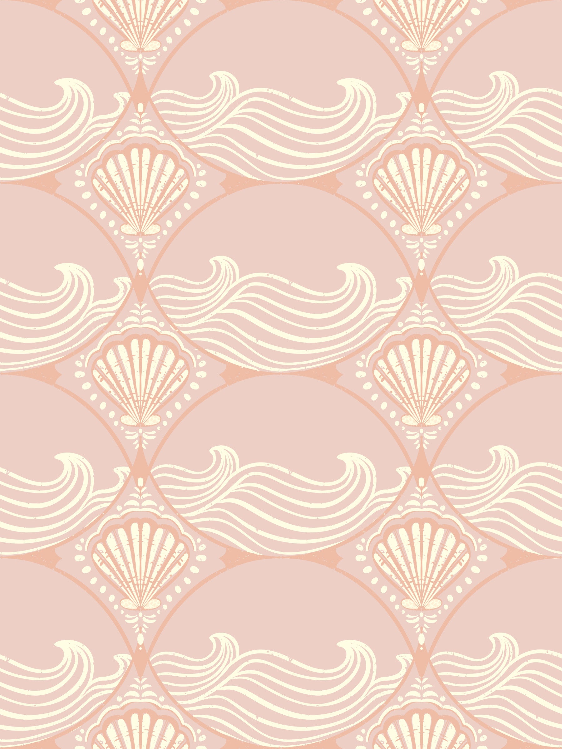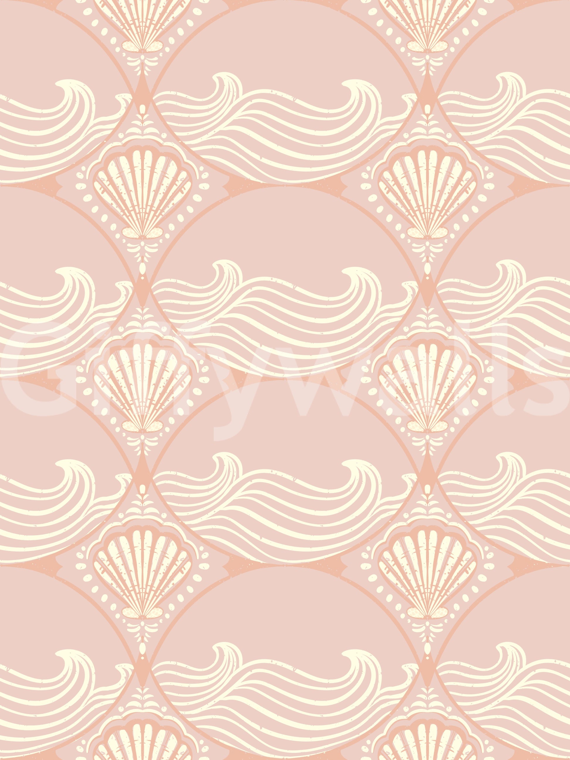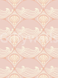 Papier peint à motif coquillage et vagues rose poudré