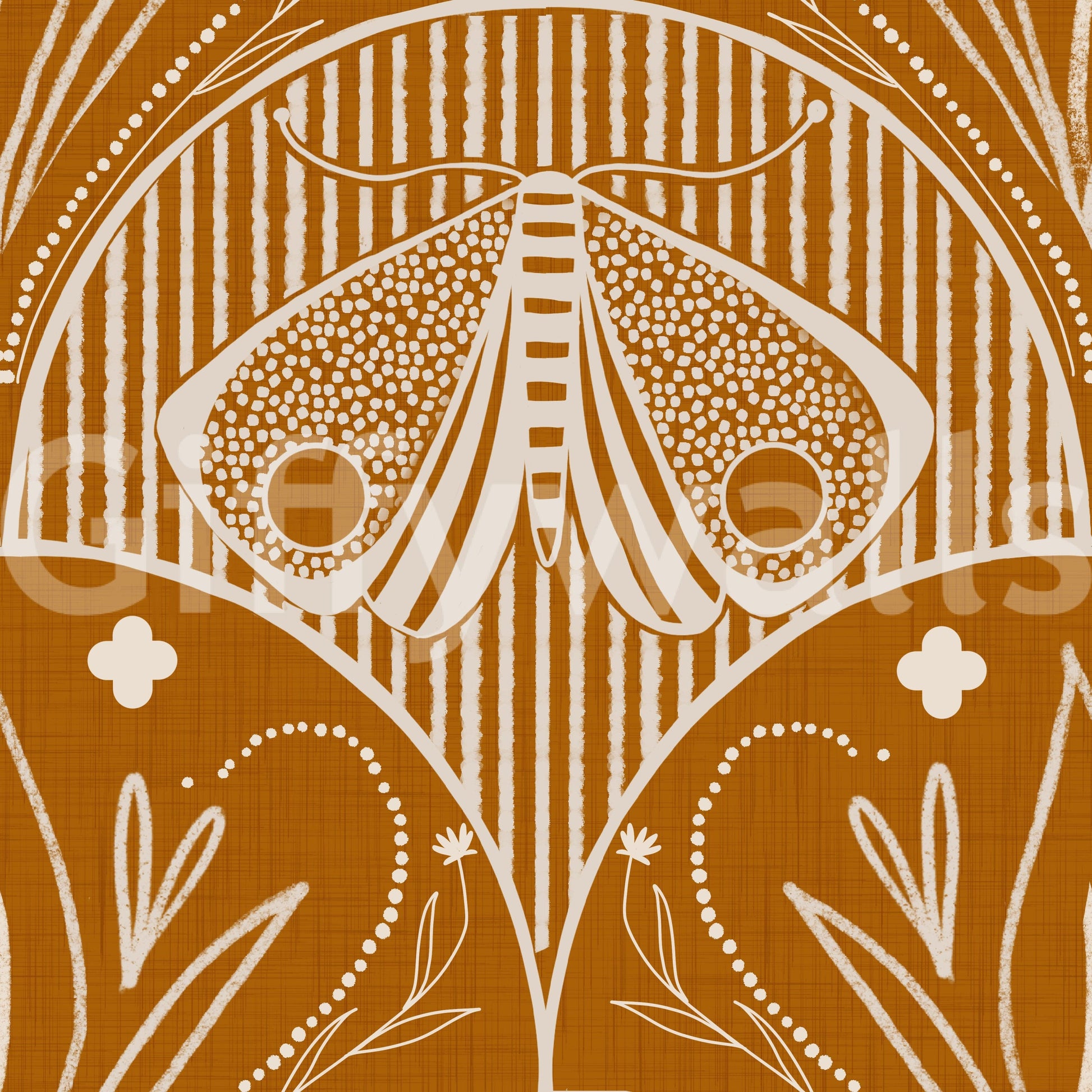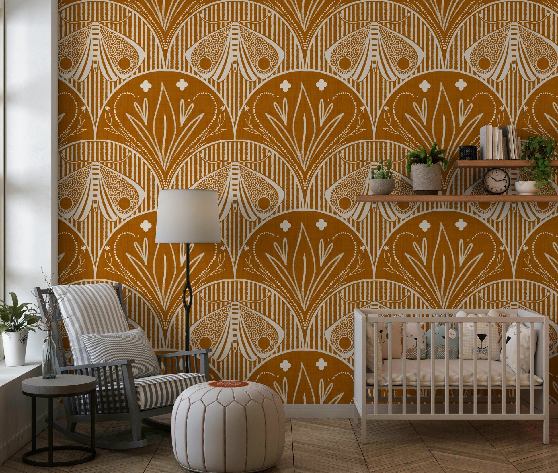 Imagine escaping into a sun-drenched, tropical paradise with the vibrant feel of the Scallop Butterfly Floral in Burnt Orange. This design blends the elegance of Boho Art Nouveau with a boldly stylized aesthetic. Featuring a prominent moth motif and delicate, abstracted floral sprigs, this pattern creates a captivating focal point in a rich, warm hue. Available as durable wallpaper for walls or as easy, convenient peel and stick wallpaper, upgrading your space is simple. For a truly immersive, grand statement, select the expansive wallpaper mural option. Introduce this beautiful, artistic pattern into your home and create your personal, tranquil escape today.