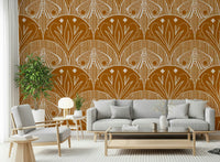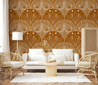Papier peint floral papillon coquille Art nouveau bohème en orange brûlé