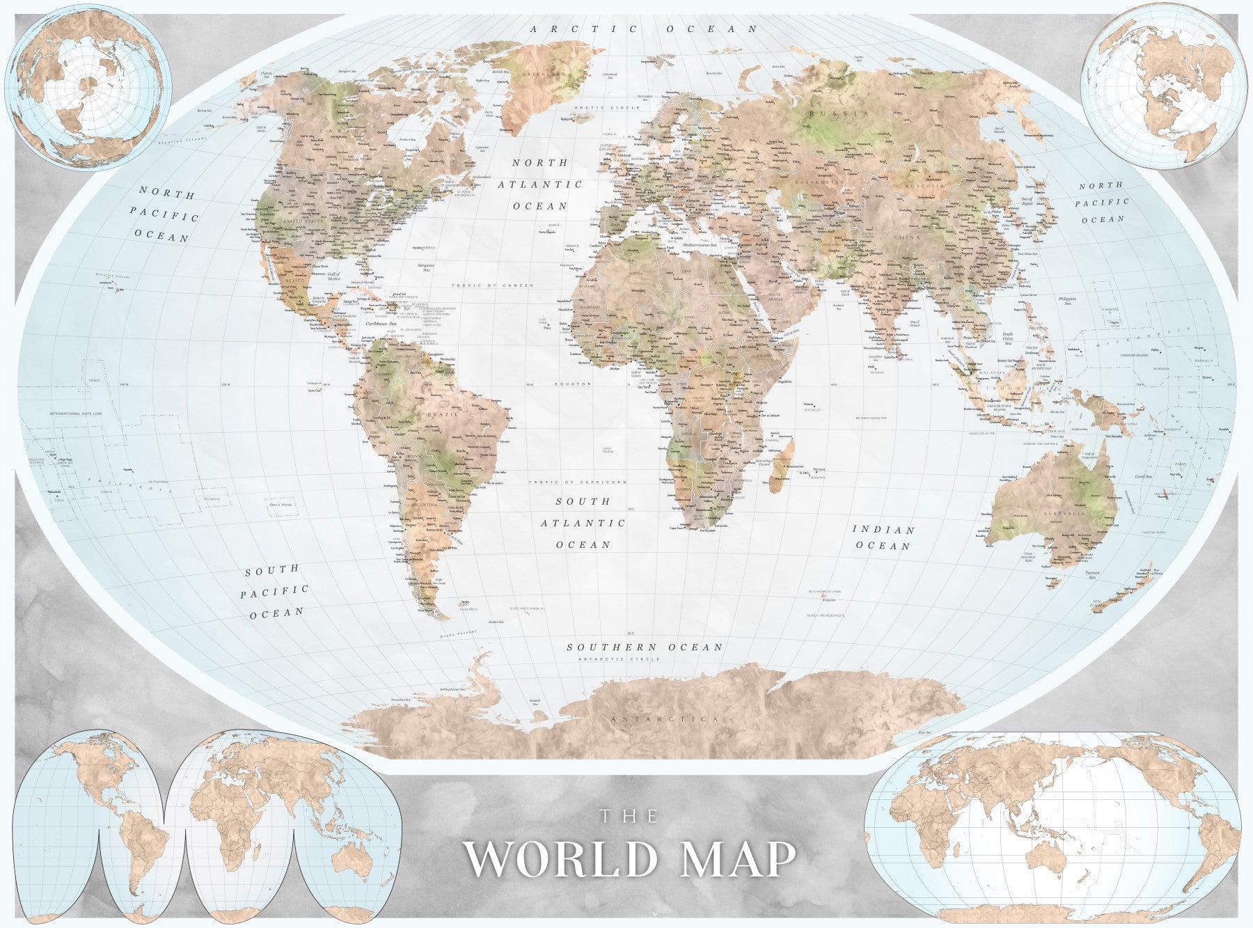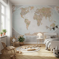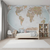 Carte du monde classique aux tons bleus et terreux - Fresque murale