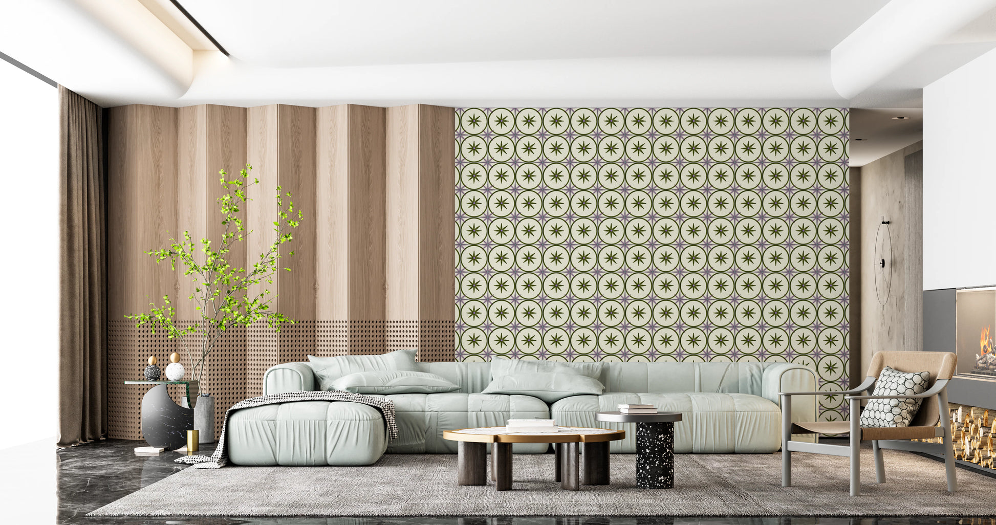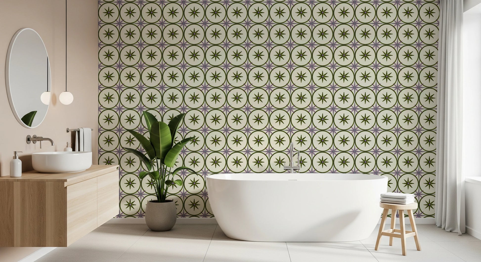 Créez une ambiance rustique et intemporelle avec notre décor mural « Crédence Olive ». Ce motif de carreaux répétitif et captivant est idéal pour apporter une touche d'élégance vintage à n'importe quelle pièce. Le fond doux et crémeux met en valeur les étoiles florales aux tons olive, chacune encadrée d'une bordure circulaire assortie. De délicates touches lilas soulignent chaque carreau, créant un subtil intérêt visuel et mettant en lumière les détails raffinés. La texture patinée ajoute de la profondeur et du caractère, évoquant le savoir-faire artisanal d'antan. Ce motif s'harmonise avec une variété de styles d'intérieur, du style campagnard classique au minimaliste contemporain, apportant chaleur et sophistication discrète à votre maison. Transformez n'importe quel espace en un havre de paix accueillant grâce à ce design intemporel, offrant un mélange harmonieux de teintes inspirées par la nature et d'un art raffiné.