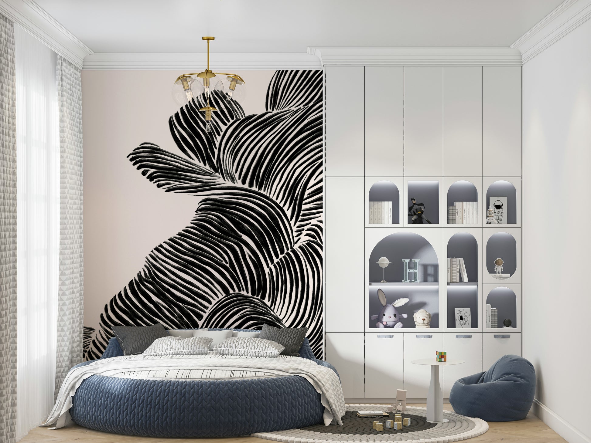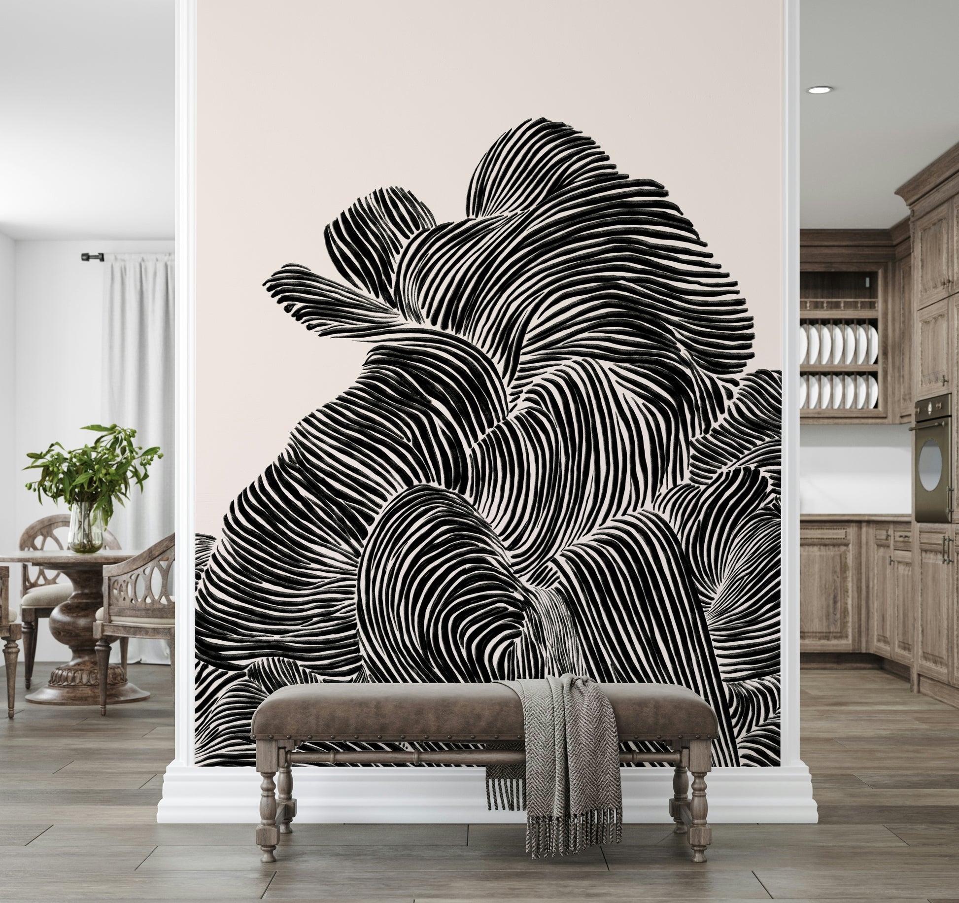Transformez votre espace avec ce papier peint captivant. Ses motifs linéaires noirs audacieux, ondulant sur un fond neutre, créent une texture visuelle saisissante. Sa palette monochrome lui confère une polyvalence exceptionnelle, lui permettant de s'intégrer harmonieusement à différents styles de décoration. Utilisez-le pour créer une ambiance sophistiquée dans un salon, un décor intrigant dans un bureau ou une touche d'originalité dans un couloir. Les lignes fluides ajoutent une impression de mouvement et de profondeur, sublimant les petites pièces tout en sublimant les grands espaces. Ce papier peint apporte une touche d'art contemporain à tout intérieur.