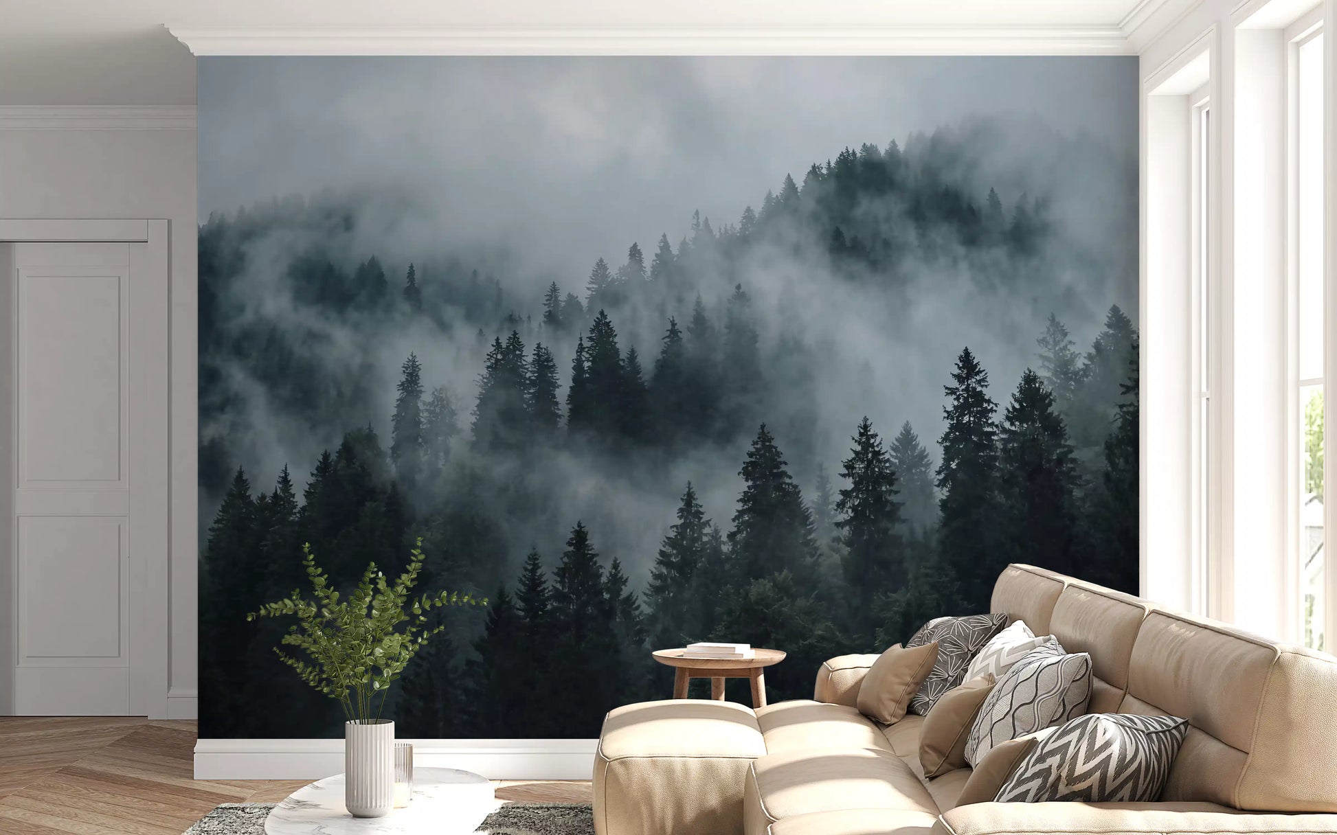 Ce magnifique papier peint capture la beauté sereine d'une forêt brumeuse. Des conifères d'un vert profond se dressent majestueusement à travers un voile tourbillonnant de brouillard gris frais et bleu doux. Son design atmosphérique crée une immersion dans la tranquillité, transformant n'importe quelle pièce en un havre de paix. Ce paysage contemporain s'harmonise avec les intérieurs minimalistes ou rustiques, leur apportant profondeur et une touche d'élégance mystérieuse. Installez-le dans un salon, une chambre ou un bureau pour susciter un sentiment de calme et de connexion avec la nature. Les subtiles variations de couleurs et la texture naturelle font entrer la majesté tranquille d'une forêt de montagne directement dans votre espace personnel, favorisant la détente et la contemplation.