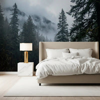 Transformez votre intérieur avec ce papier peint captivant, représentant une forêt dense et brumeuse. De grands conifères, enveloppés d'une douce brume, créent une atmosphère profonde et sereine. Un chemin sinueux invite à la contemplation, attirant le regard vers la profondeur du paysage. La palette de couleurs douces, composée de verts profonds, de gris mystérieux et de bleus-gris tendres, évoque une expérience immersive et paisible. Ce motif favorise une ambiance calme et introspective, sublimant les espaces d'une grandeur naturelle. Il s'intègre parfaitement dans un salon, une chambre, un bureau ou un couloir, apportant à votre intérieur la majesté tranquille d'une forêt brumeuse. Ses éléments naturels et son aspect éthéré s'harmonisent à merveille avec les intérieurs modernes rustiques, minimalistes ou contemporains, leur conférant profondeur et une touche de beauté mystérieuse.