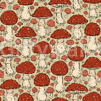 Mushroomcore wallpaper with red and beige tones