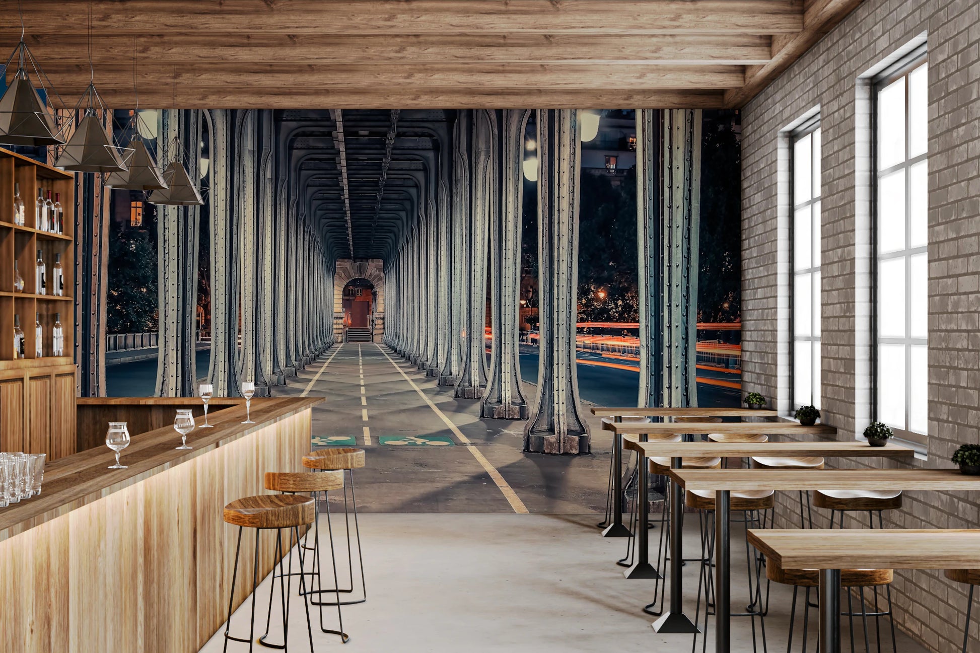 Transformez vos murs en un voyage visuel captivant grâce à ce papier peint architectural saisissant. L'image présente un tunnel d'arches répétées, bordé de robustes poutres métalliques et illuminé. Cette perspective évoque la profondeur, la symétrie et une élégance industrielle. La palette de couleurs, composée de gris et de bleus doux, contraste subtilement avec la lumière chaude, créant une atmosphère apaisante. Ce papier peint affirme un style audacieux dans n'importe quel espace, notamment les chambres, les couloirs ou les salles à manger. Sa structure unique et ses tons feutrés offrent un fond sophistiqué qui s'harmonise aussi bien avec les styles de décoration contemporains que classiques.