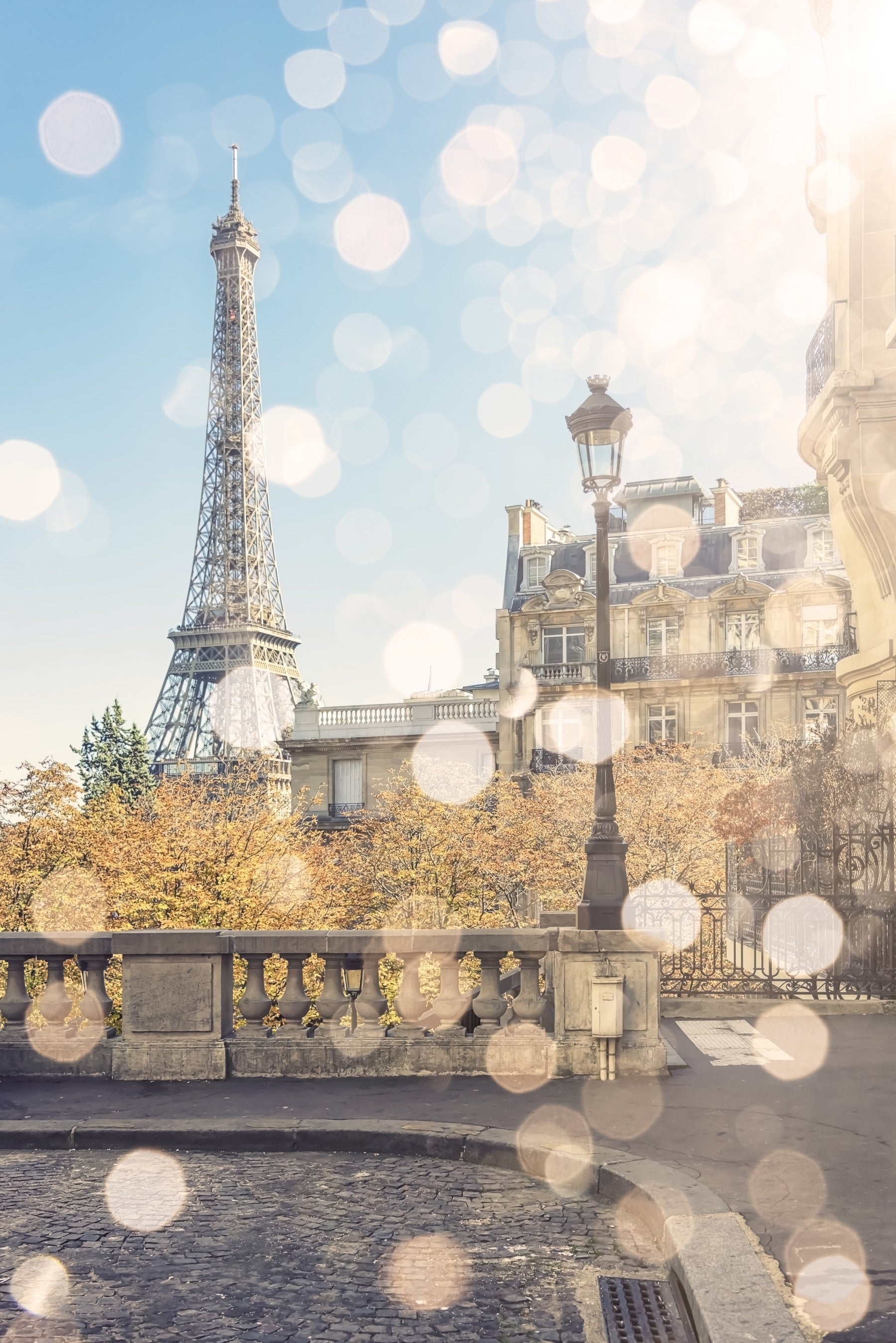 Infusez votre intérieur d'une élégance parisienne grâce à ce papier peint panoramique. L'emblématique Tour Eiffel se dresse fièrement sur fond d'architecture classique et d'arbres aux teintes ambrées. Une douce lumière bokeh, vaporeuse et vaporeuse, filtre à travers la scène, créant une atmosphère onirique et accueillante. Le mélange de beige, de bleu clair et de doré s'harmonise avec différents styles de décoration et sublime des pièces comme le salon, le couloir ou la chambre. Transformez votre maison en une charmante oasis parisienne et goûtez à la beauté et au raffinement de la vie citadine dans le confort de votre foyer. Invitez élégance et sophistication dans votre quotidien.