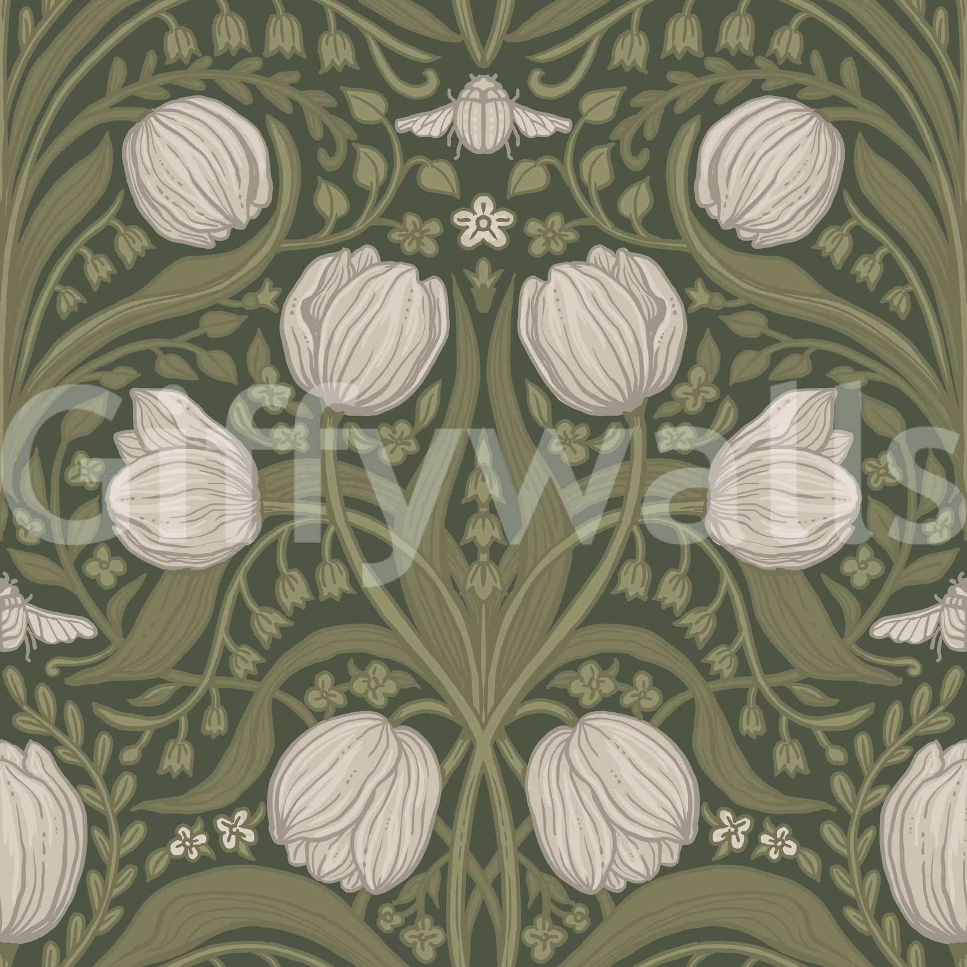 Motif symétrique peint à la main avec des tulipes stylisées et des fleurs de muguet