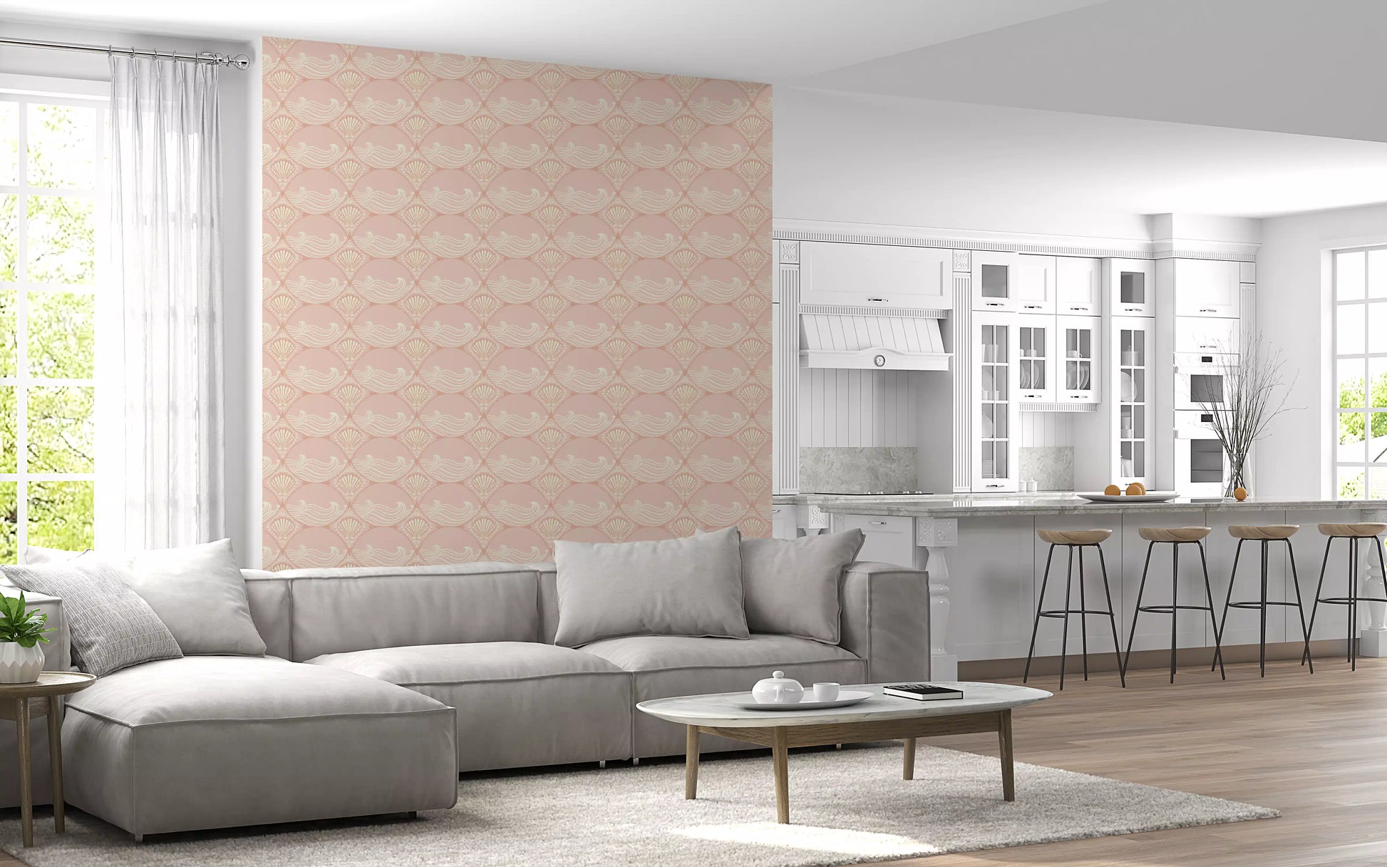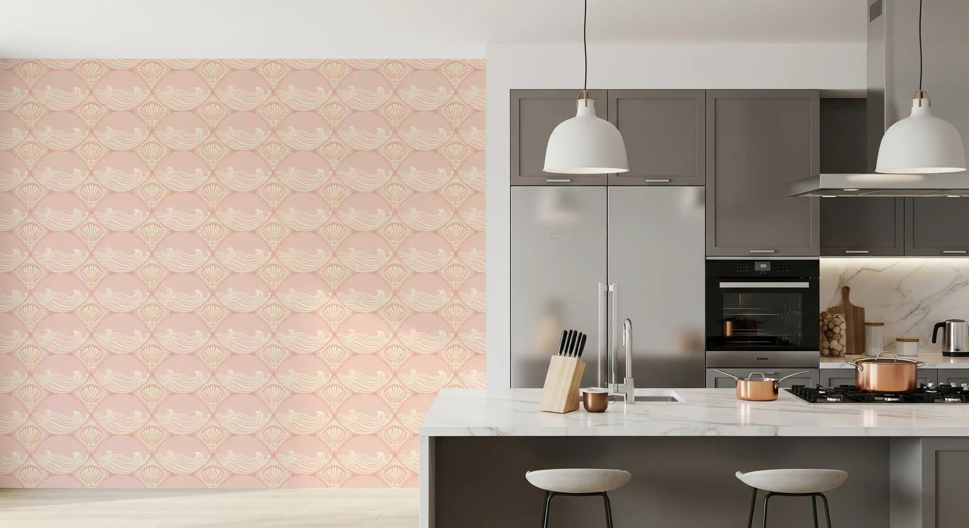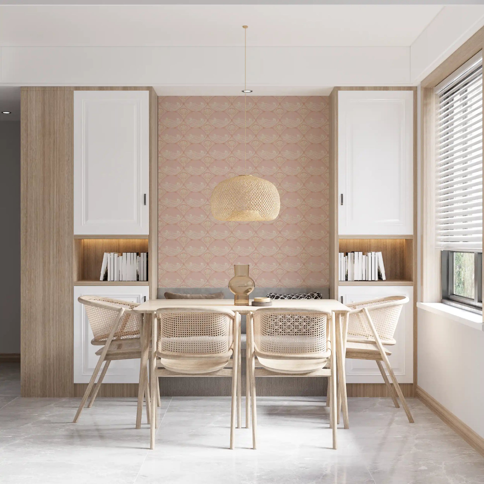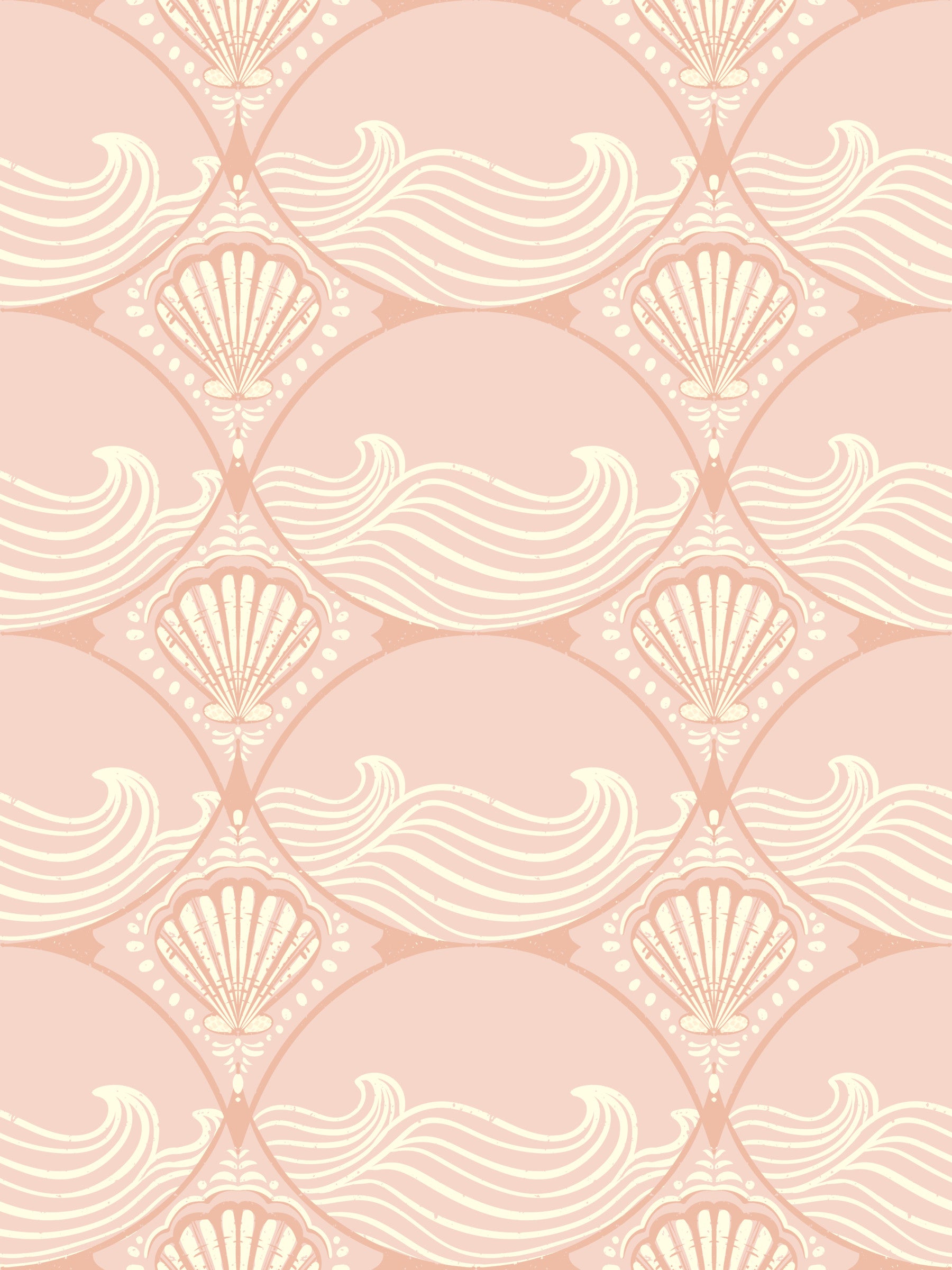Transformez votre intérieur avec ce papier peint captivant d'inspiration Art déco. Son motif continu de coquillages stylisés et de vagues gracieuses évoque le charme serein du littoral. La palette de roses tendres et de blanc cassé crémeux apporte une douce chaleur à n'importe quelle pièce. De subtiles textures patinées ajoutent une touche vintage, rehaussant la profondeur et le caractère du motif. Ce design élégant s'intègre parfaitement dans les salles de bains, créant une ambiance spa, ou dans une chambre pour une oasis de tranquillité. Il apporte également une touche sophistiquée aux salons, aux chambres d'enfants et aux salles d'eau, insufflant aux espaces une atmosphère accueillante et apaisante. Ce papier peint unique s'harmonise aussi bien avec les styles de décoration modernes que classiques.