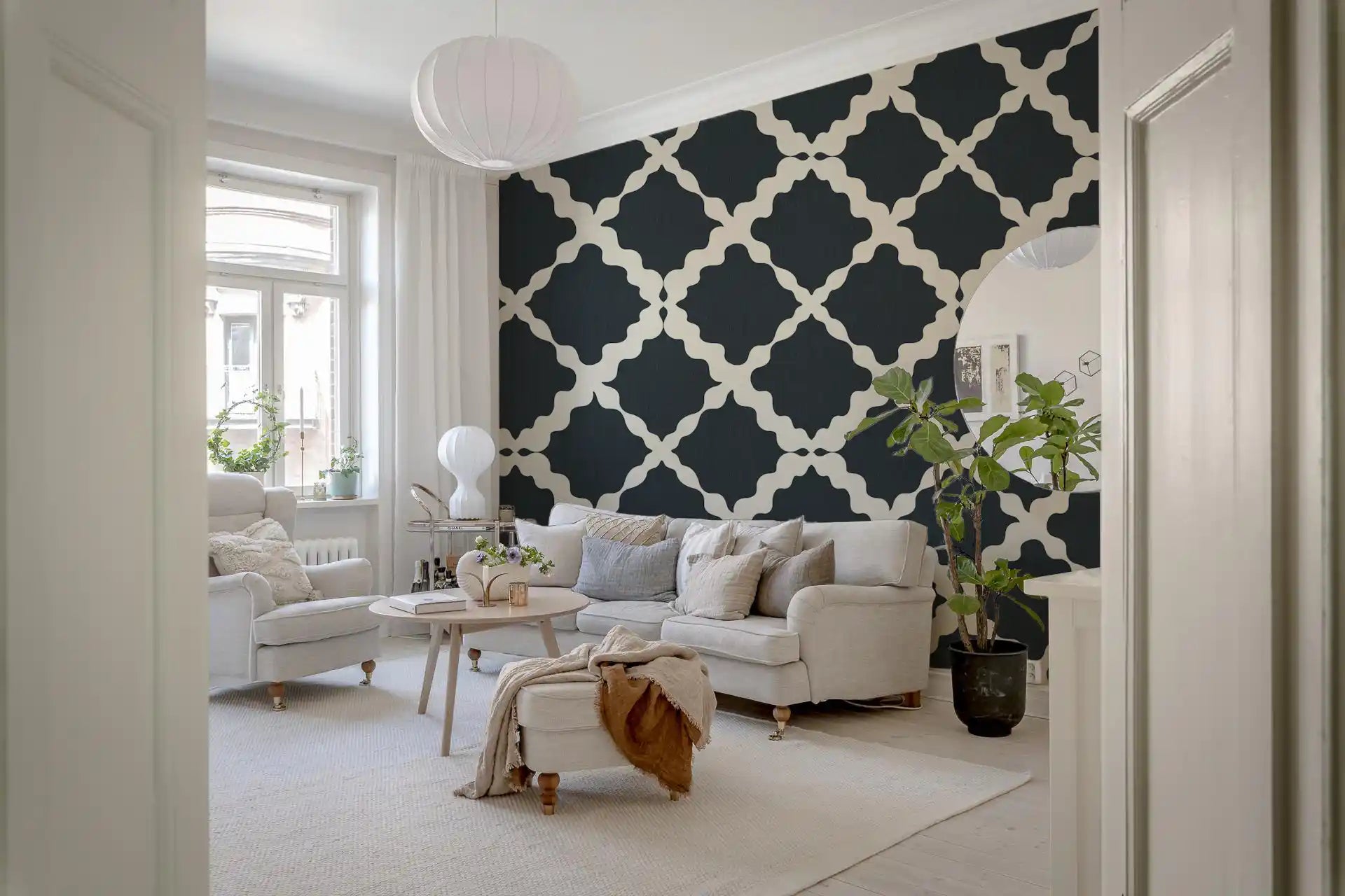 Transformez votre intérieur avec l'élégance sophistiquée de notre design Treillis Texturé. Ce revêtement mural captivant allie habilement le minimalisme moderne à une structure géométrique classique, présentant un fond charbon raffiné orné d'un motif de treillis fluide et complexe dans un blanc cassé doux et naturel. La texture subtile mais distincte, rappelant le lin fin, ajoute une dimension tactile accueillante, renforçant la profondeur et le caractère du design sans surcharger les sens. Chaque ligne gracieusement courbée s'entrelace pour créer un treillis harmonieux, offrant une sensation de luxe discret et de style contemporain. Parfait pour créer un point focal serein ou ajouter une touche architecturale chic à n'importe quelle pièce, ce design incarne un attrait intemporel. Sa palette monochromatique assure une grande polyvalence, complétant parfaitement une large gamme de styles de décoration, du scandinave à l'urbain moderne, apportant une ambiance sophistiquée et apaisante à votre espace de vie.