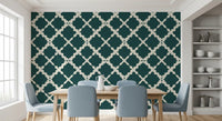 Papier peint moderne minimaliste géométrique treillis texturé en bleu sarcelle profond