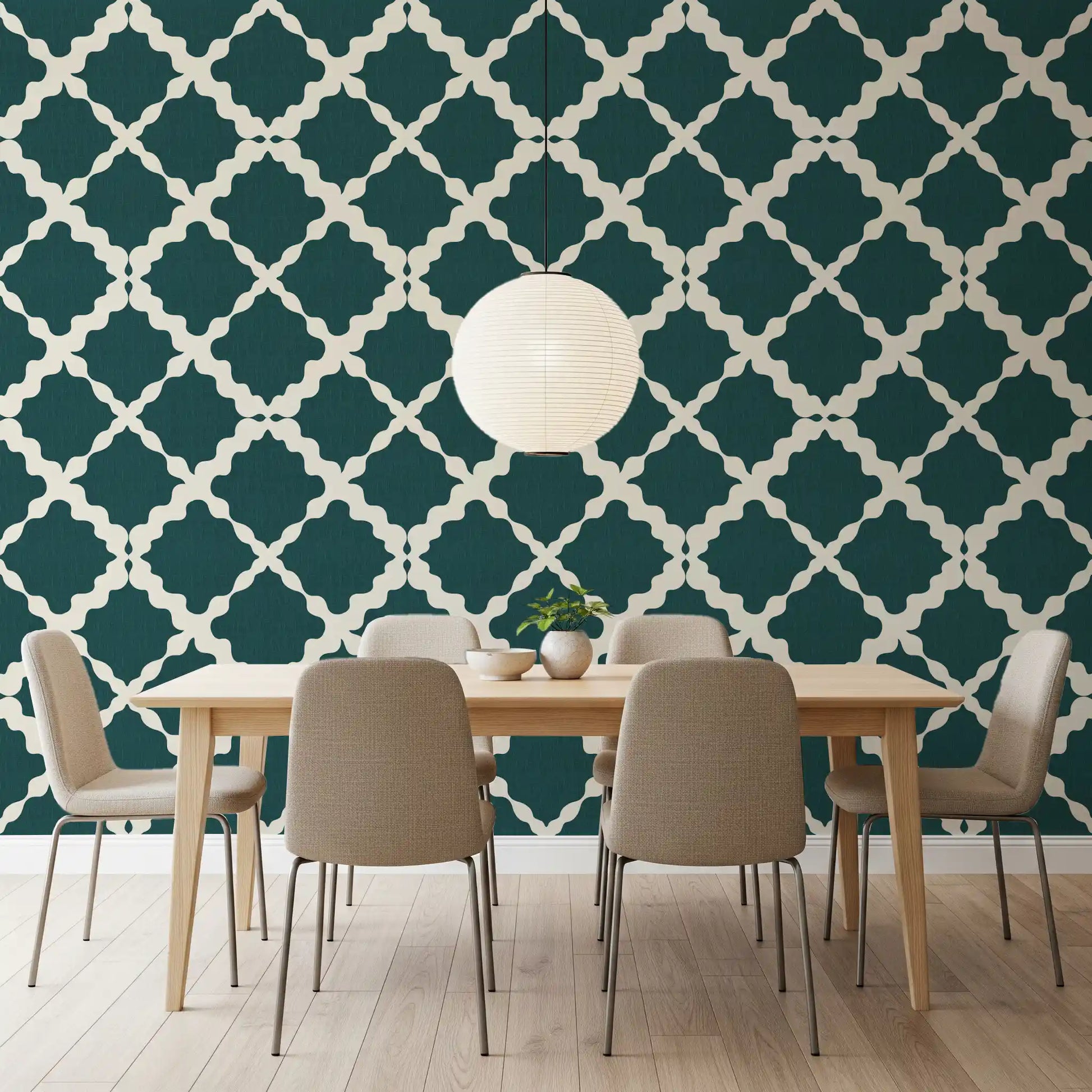 Plongez votre espace dans une tranquillité sophistiquée avec ce magnifique revêtement mural, un parfait mélange d'élégance moderne et de design intemporel. Le motif « Textured Lattice Trellis Geometric Deep Teal Minimalist Modern » présente une teinte bleu sarcelle profonde exquise, enrichie d'une subtile texture semblable au lin qui ajoute de la profondeur et un attrait tactile à toute pièce. Superposé à cette base luxueuse, un captivant motif géométrique en treillis blanc cassé. Loin d'être rigide, ses formes curvilignes uniques créent un flux organique et accueillant qui adoucit le treillis structuré, offrant une interprétation fraîche et contemporaine des motifs classiques. Ce design minimaliste mais impactant élève sans effort les intérieurs, apportant une esthétique sereine et cohérente. Idéal pour créer un point focal ou une transformation complète de la pièce, il promet d'infuser vos murs d'un luxe discret et d'un charme résolument moderne.