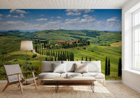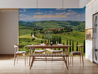 Transformez votre pièce grâce à ce papier peint exquis, qui capture la beauté intemporelle de la campagne toscane. Des collines verdoyantes se déploient à l'horizon, invitant le regard à suivre une élégante route bordée de cyprès menant à une charmante villa italienne. Une palette vibrante de verts luxuriants, de bleus ciel azur et de tons terracotta chauds imprègne les espaces d'une sérénité naturelle. Ce motif pittoresque crée une atmosphère spacieuse et paisible, idéale pour sublimer un salon, une salle à manger ou une chambre à coucher. Il apporte le charme idyllique de l'Italie directement chez vous, instaurant une ambiance à la fois détendue et élégante.