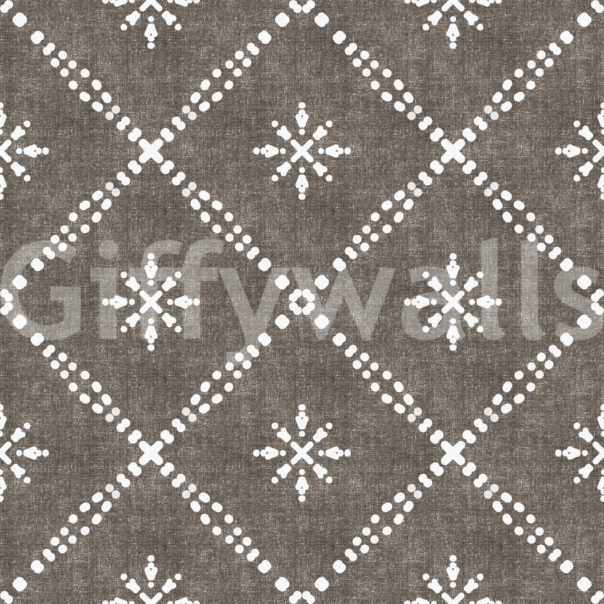 Carta da parati Boho con motivo a reticolo punteggiato e grunge, effetto corteccia scura