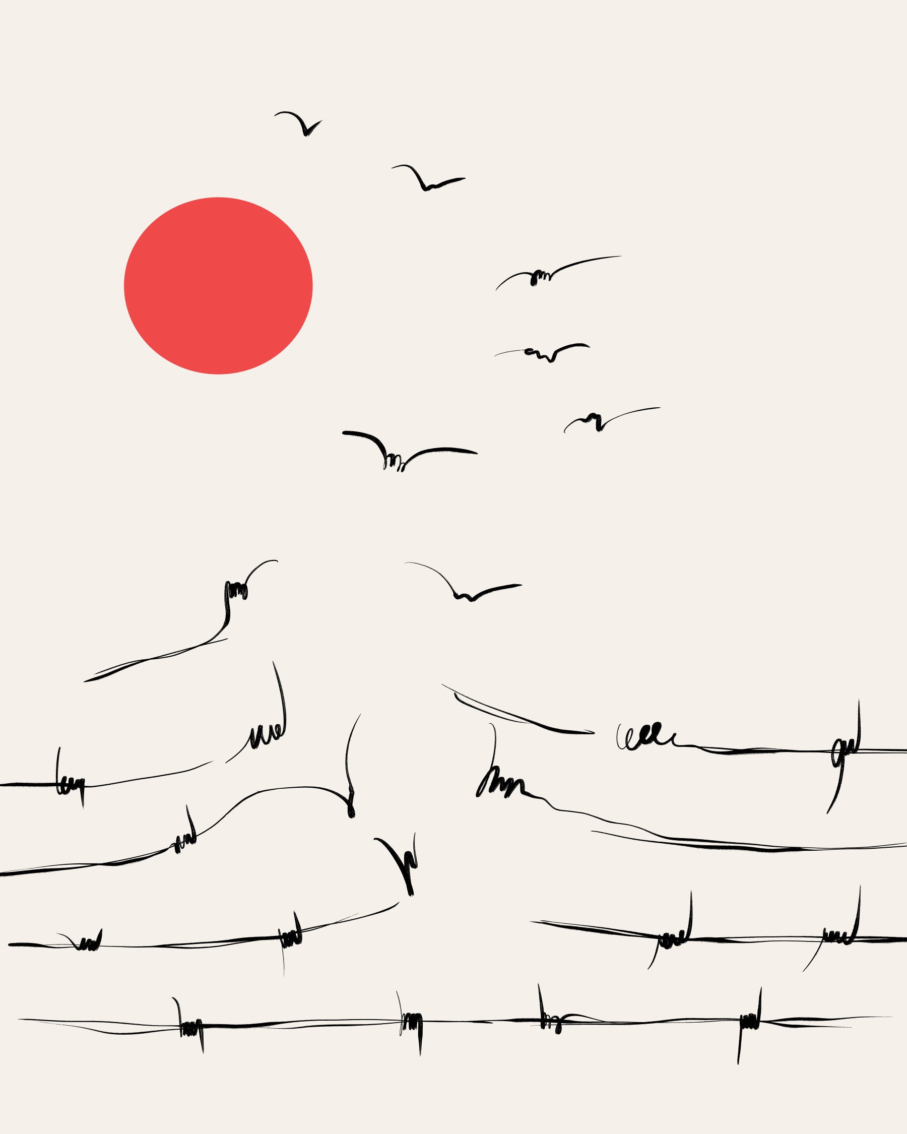 Trascendi i confini e abbraccia la liberazione con questa suggestiva opera d'arte murale. Su uno sfondo tranquillo e soffuso, sorge un sole rosso intenso, simbolo di speranza e nuovi inizi. In basso, rappresentazioni stilizzate di filo spinato alludono al superamento dei limiti, a testimonianza della resilienza e della forza dello spirito umano. Uno stormo di uccelli si alza in volo verso il sole radioso, e ogni pennellata è un'audace dichiarazione di libertà ritrovata. Quest'opera d'arte è un potente promemoria per liberarsi dai limiti, inseguire le aspirazioni e trovare la bellezza nel viaggio di scoperta di sé. Decora il tuo spazio con questo design stimolante e lascia che il suo messaggio di empowerment risuoni nella tua anima. Una straordinaria narrazione visiva, "Break Free" cattura l'essenza della liberazione e la ricerca di orizzonti sconfinati.