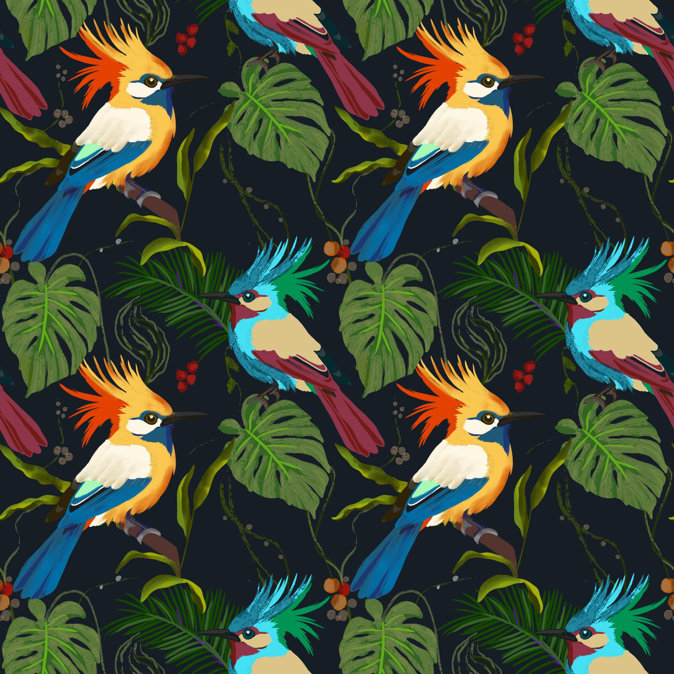 Cheerful yellow bird and fruit pattern