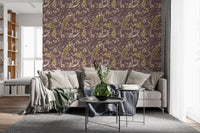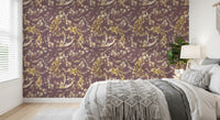 Immergi il tuo spazio abitativo in un'eleganza senza tempo con la nostra carta da parati 'Heritage Plum Bird & Floral'. Questo design squisito ti trasporta in un giardino orientale sereno, illuminato dal morbido bagliore di un crepuscolo eterno. Delicati rami di prugno, adornati da una profusione di fiori in fiore, si intrecciano con grazia a maestosi uccelli stilizzati, il loro piumaggio dorato e dettagliato che scintilla con una qualità eterea su uno sfondo ricco e rilassante di tonalità prugna. Ogni dettaglio artistico, reso con precisione affascinante, cattura la bellezza intrinseca dell'arte della natura e dei suoi motivi intricati. L'armoniosa combinazione di ori radiosi e bianchi cremosi crea una profondità lussuosa, invitando un'atmosfera di tranquillità e sofisticazione profonda in ogni ambiente. Perfetta per creare una parete d'accento mozzafiato o per avvolgere un intero spazio in una bellezza raffinata, questo design evoca un senso di grandezza storica e armonia naturale. Offre un motivo davvero unico e incantevole, elevando il tuo interno con la sua presenza calma e affascinante.