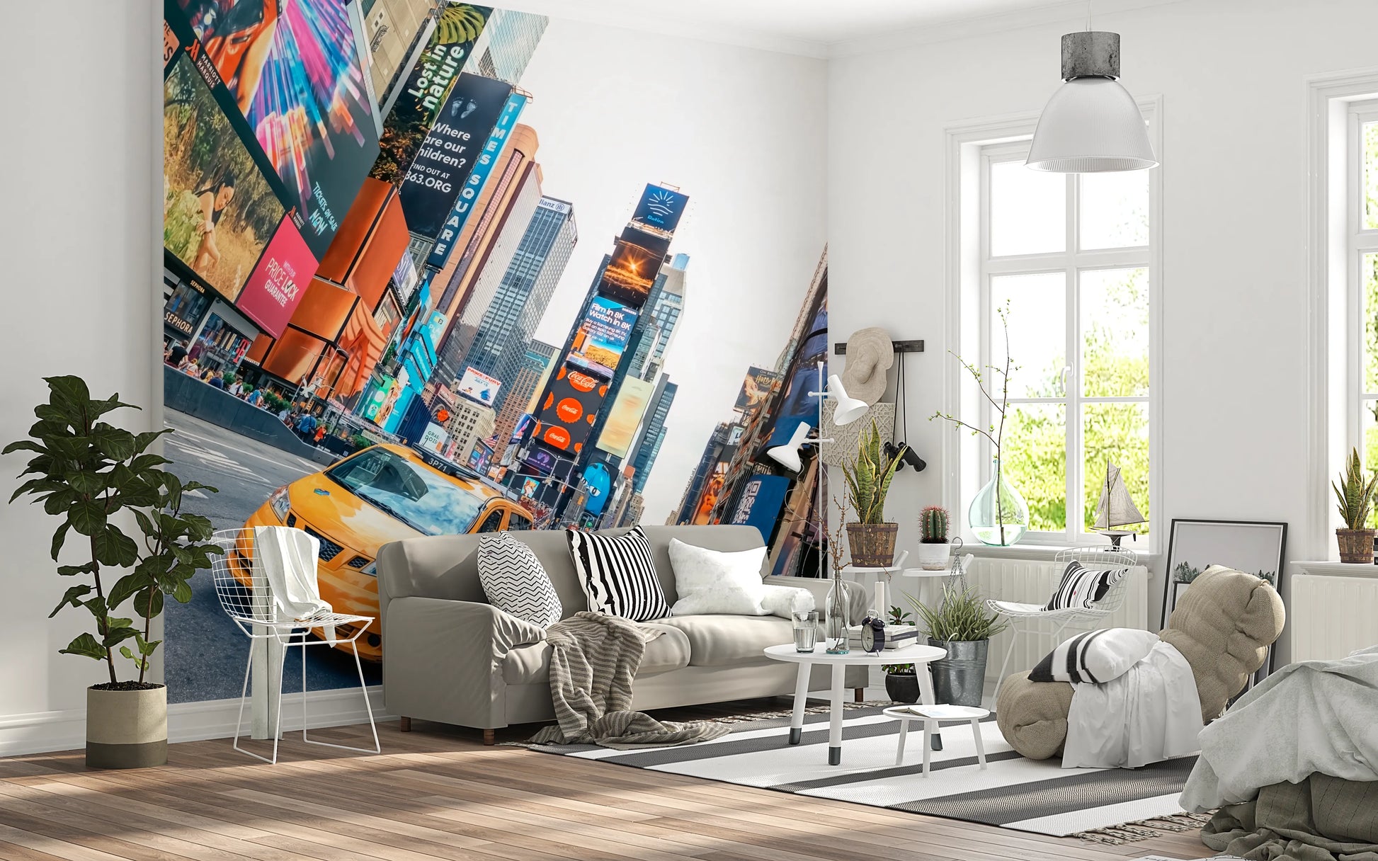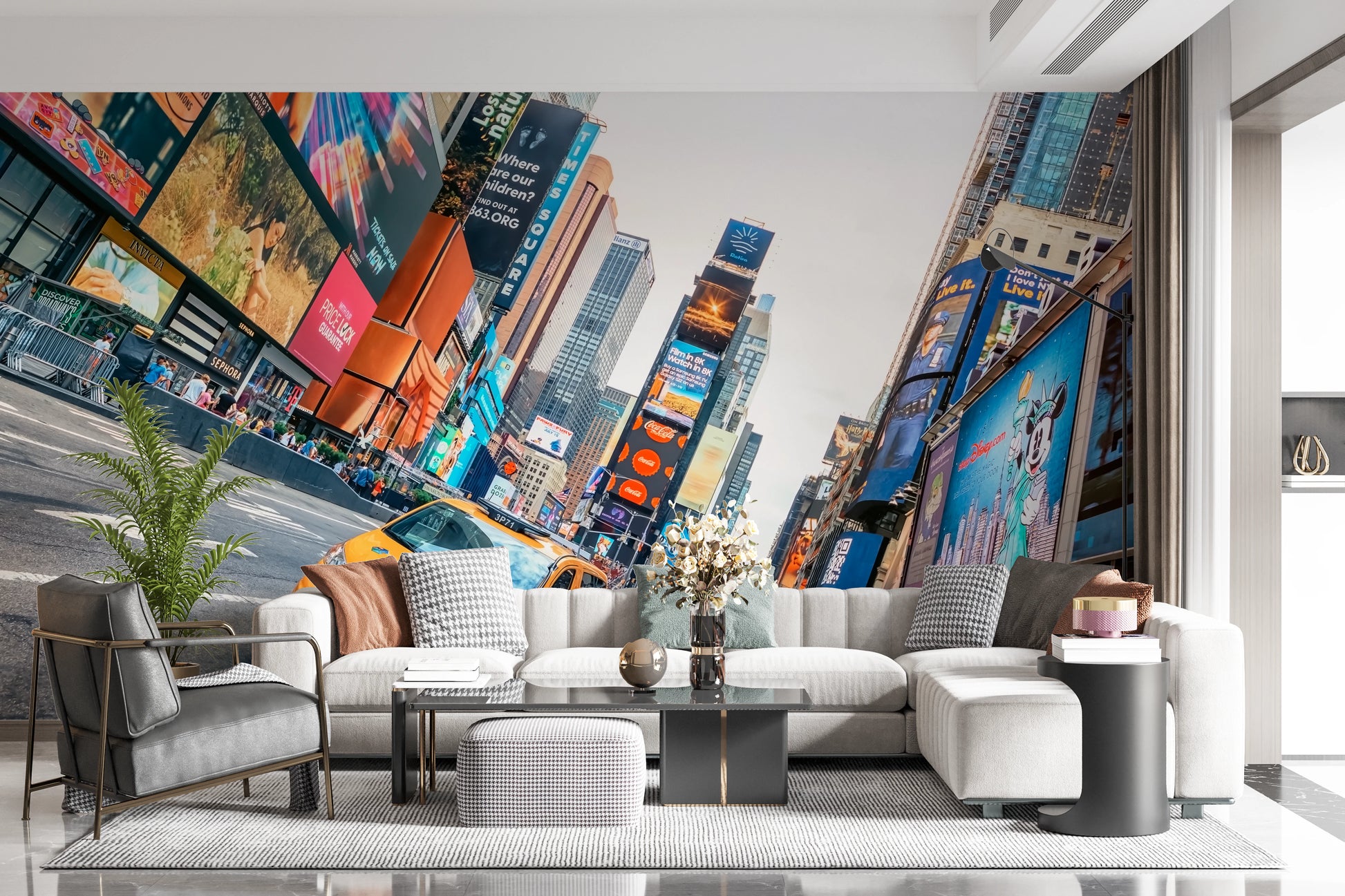 Porta l'energia iconica di Times Square nella tua casa con questa audace carta da parati per pareti. Cattura l'essenza del vivace paesaggio urbano di New York City, con i suoi imponenti edifici e i cartelloni pubblicitari luminosi. Un accattivante taxi giallo attraversa la scena, aggiungendo un dinamico punto focale. La vivida palette di colori e l'atmosfera vivace rendono questo design una scelta accattivante per corridoi, camere da letto o soggiorni. Trasforma i tuoi interni in una celebrazione dinamica della vita urbana e inietta un punto focale energico in qualsiasi stanza.