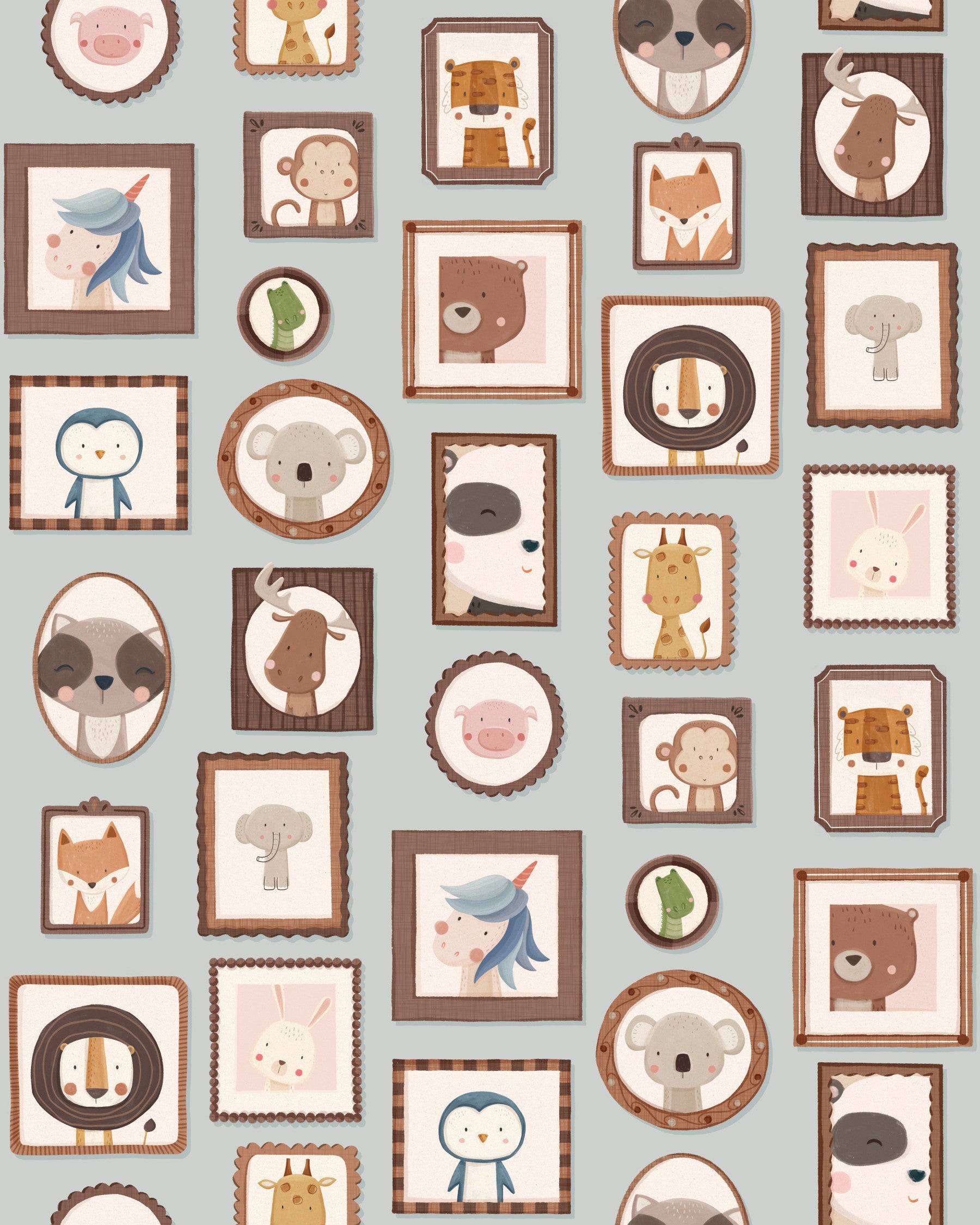 Trasforma il tuo spazio in un'affascinante galleria con "Ritratti di animali stravaganti". Questo delizioso design presenta una collezione di adorabili ritratti di animali, ognuno amorevolmente incorniciato in una varietà di stili. Da un elegante leone e una dolce giraffa a un bizzarro unicorno e un tenero koala, questa composizione porta un tocco di giocosa raffinatezza in ogni stanza. La palette di colori tenui e i dettagli testurizzati creano un'atmosfera calda e accogliente, perfetta per asili nido, sale giochi o qualsiasi spazio in cui desideri infondere un senso di gioia e meraviglia. Lascia che questi adorabili personaggi accendano l'immaginazione e aggiungano un tocco unico all'arredamento della tua casa. Immagina le storie che raccontano, appese silenziosamente alle tue pareti, aggiungendo personalità e vibrazioni allegre.