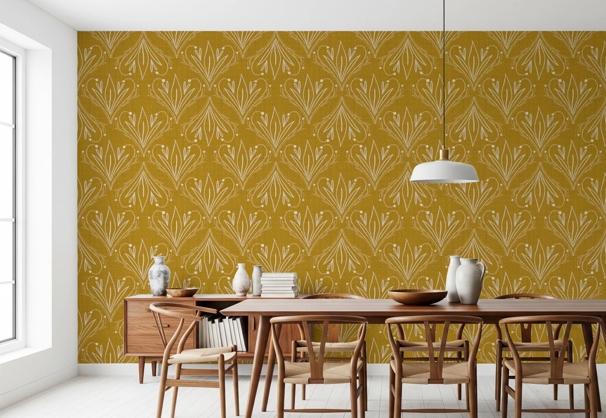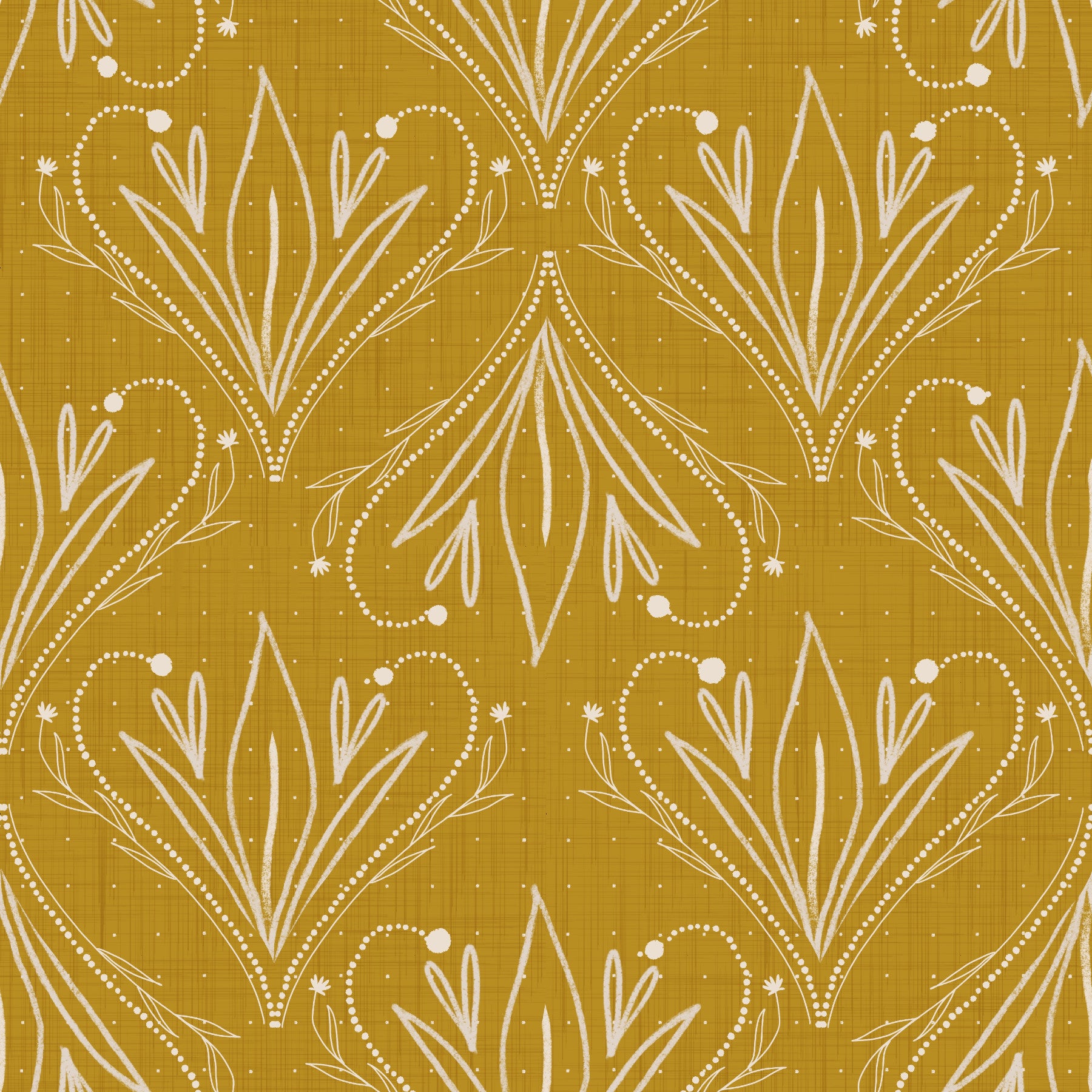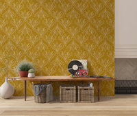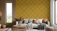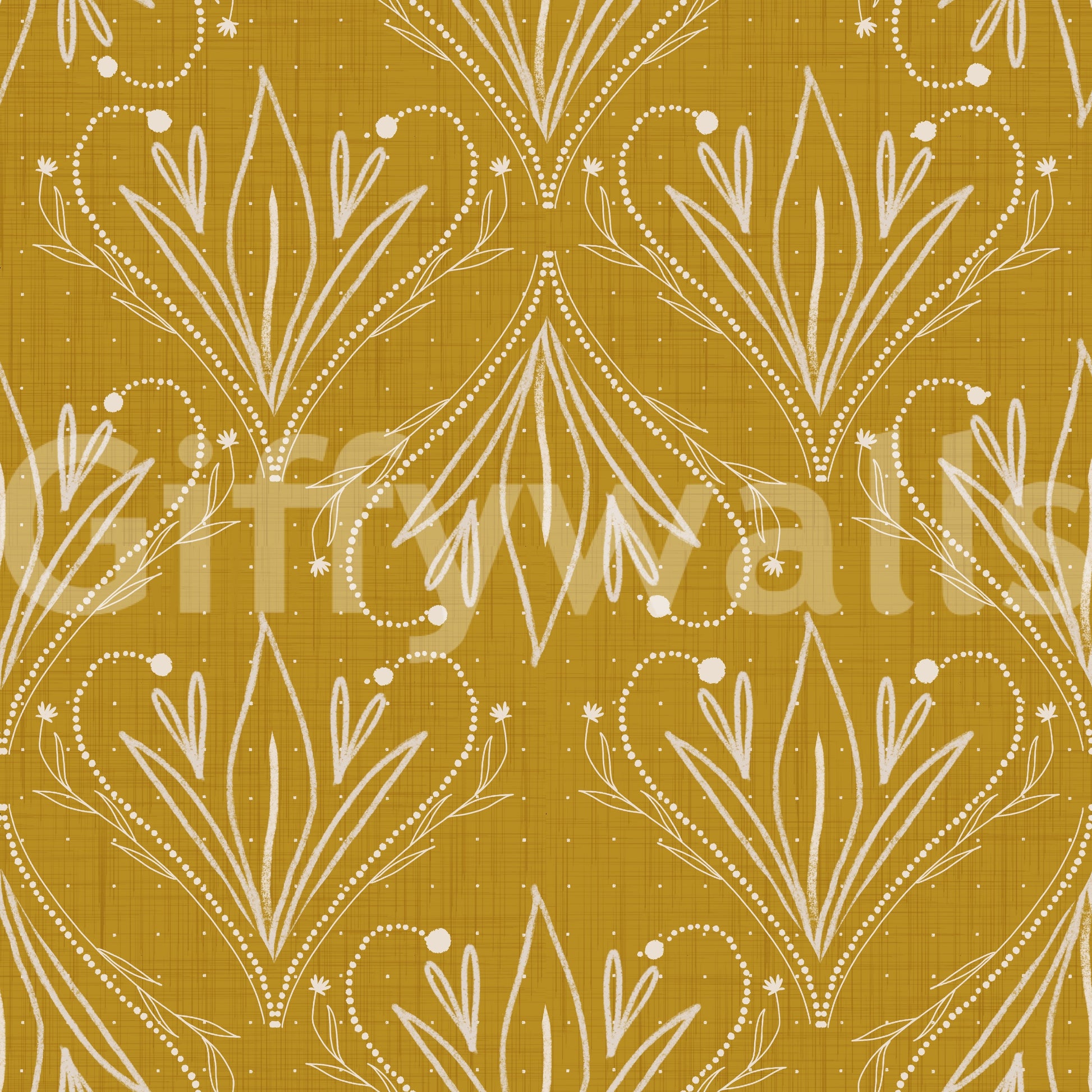 Carta da parati Boho Art Nouveau Folk Floral Mustard Gold – Carta da parati disegnata a mano