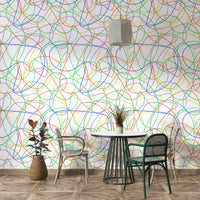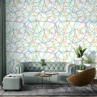Energize your space with this vibrant line art! The design shows an array of colorful, curved lines that dance across a clean white background. The wallpaper for walls brings a modern, playful touch to any room. The cheerful colors and abstract pattern brighten living rooms, kids' rooms, or hallways. It's a fantastic way to add visual interest without overwhelming other decor. The smooth lines will enhance the space.