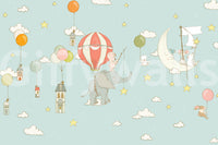 Float away with this dreamy wallpaper for walls! Delicate illustrations show animals soaring through a pastel sky filled with stars, clouds, and houses on balloons. Soft shades of blue, pink, and yellow create a calming effect. It's ideal for a nursery or kids' room. The whimsical design brings a touch of magic and complements any cozy interior.