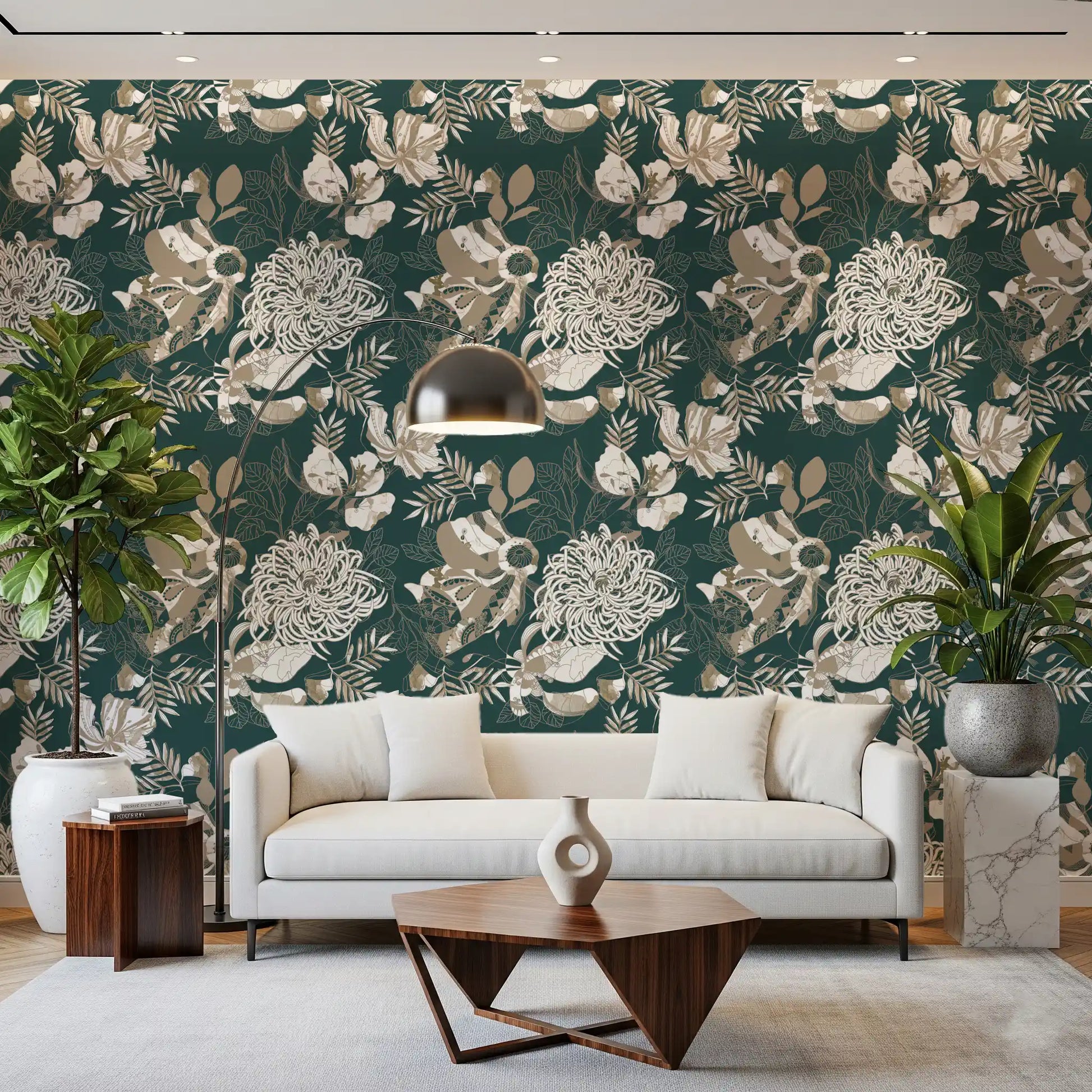 Immergiti nella sofisticata eleganza del nostro rivestimento murale Forest Green Art Deco Floral. Questo design squisito cattura l’eleganza senza tempo dell’era Art Deco, reinterpretata con un affascinante tocco botanico. Uno sfondo verde foresta profondo e incantevole offre una tela ricca per una danza intricata di motivi floreali stilizzati e fogliame delicato. Fiori aggraziati, resi in bianchi cremosi e toni beige caldi, si intrecciano con fronde sottili, tutte delineate con dettagli meticolosi che evocano il lusso vintage. Accenni di marmorizzatura sottile all’interno delle forme aggiungono una profondità organica, esaltando la sensazione opulenta del design. Questo rivestimento trasforma ogni ambiente in un santuario sereno ma drammatico, offrendo un’estetica raffinata che unisce la tranquillità della natura al fascino geometrico classico. Perfetto per creare una parete d’accento o decorare un’intera stanza, promette un’atmosfera di fascino sofisticato e stile artistico.