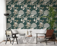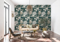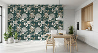 Carta da parati floreale Art Deco verde foresta