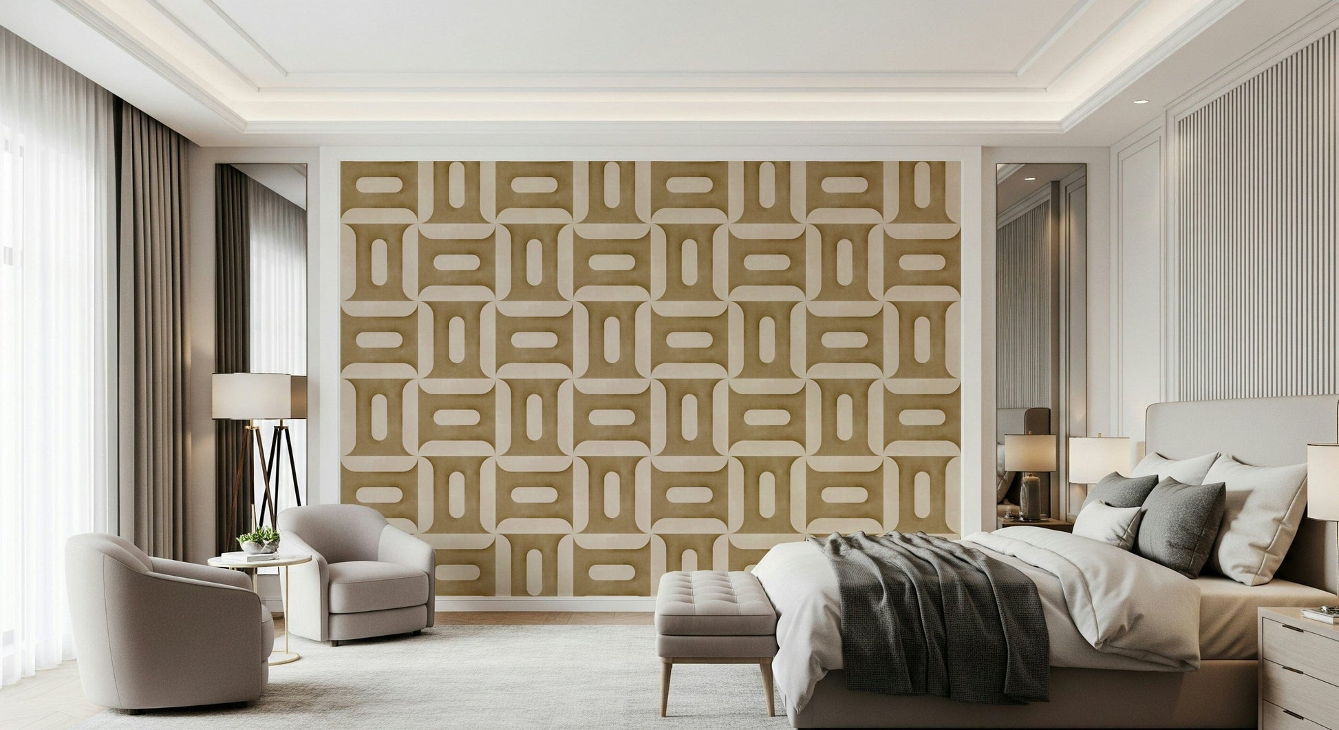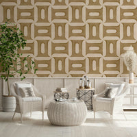 Carta da parati moderna con geometrie strutturate color cammello