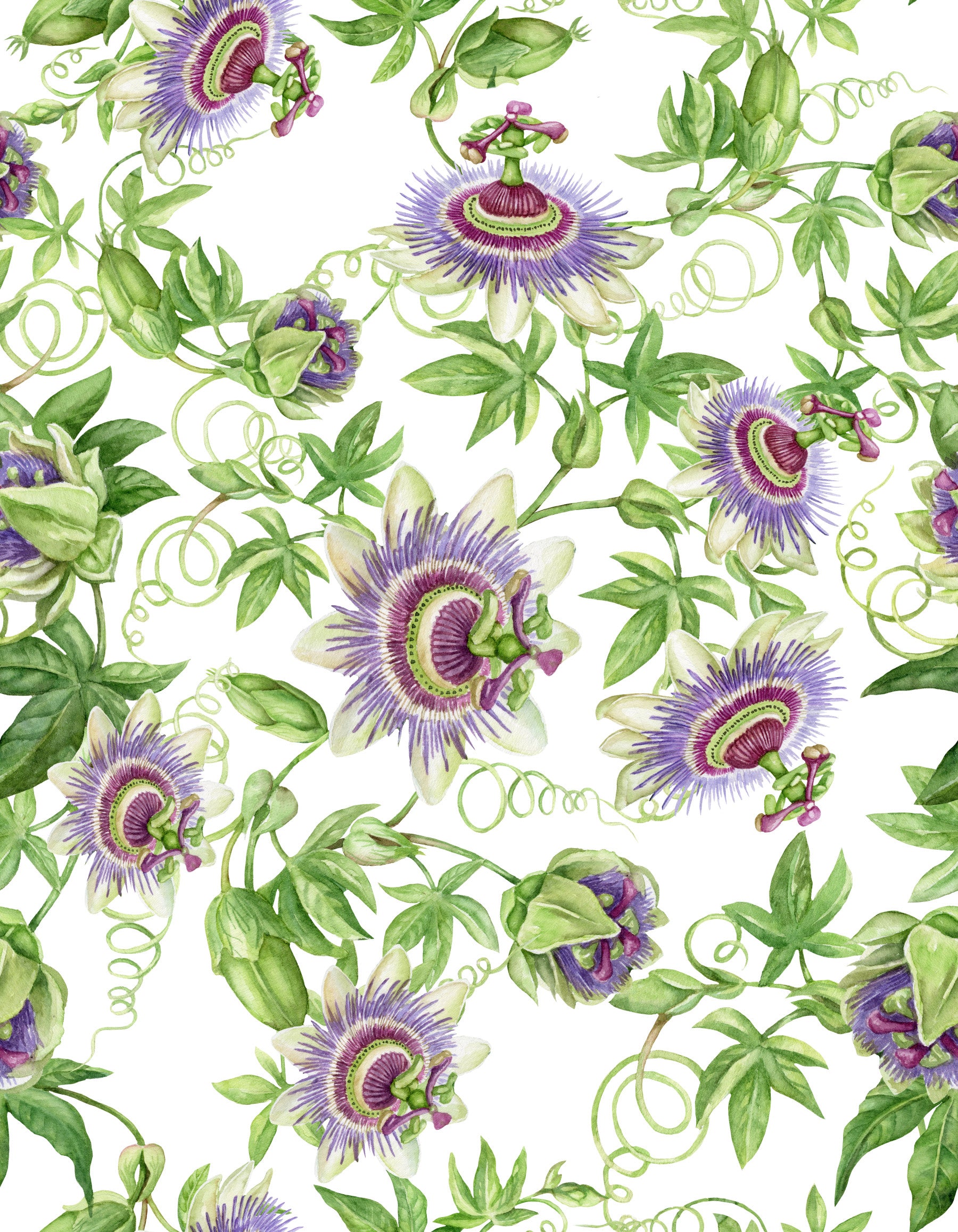 Seamless botanical Passionflower Dream wallpaper for walls.