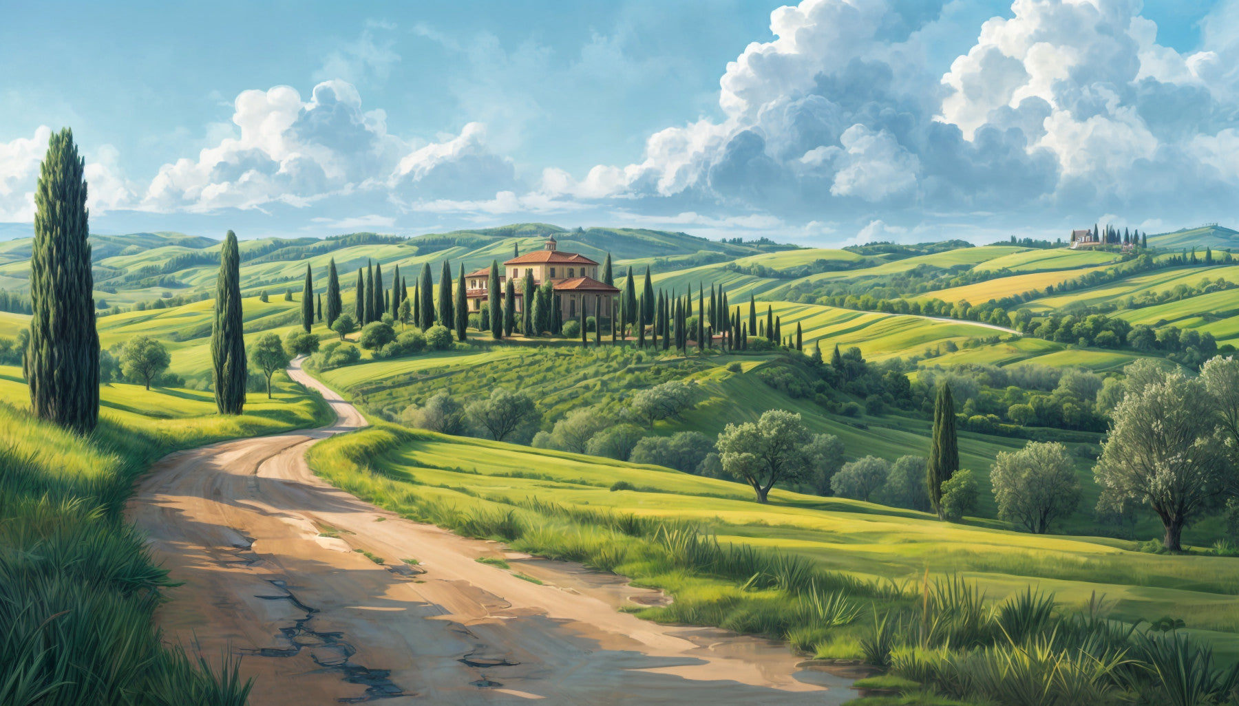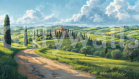 Trasforma qualsiasi stanza con questo idilliaco paesaggio toscano. Questa carta da parati per pareti porta le dolci colline e i cipressi italiani nella tua casa. La sua palette di colori tenui e solari, con verdi e gialli, aggiunge calore e serenità a soggiorni, sale da pranzo o camere da letto. Lo stile dettagliato delle illustrazioni crea un senso di profondità, trasformando le tue pareti in una finestra sulla campagna italiana. Questa carta da parati esalta la luce naturale, aprendo i tuoi spazi e donando un tocco di rustica eleganza.