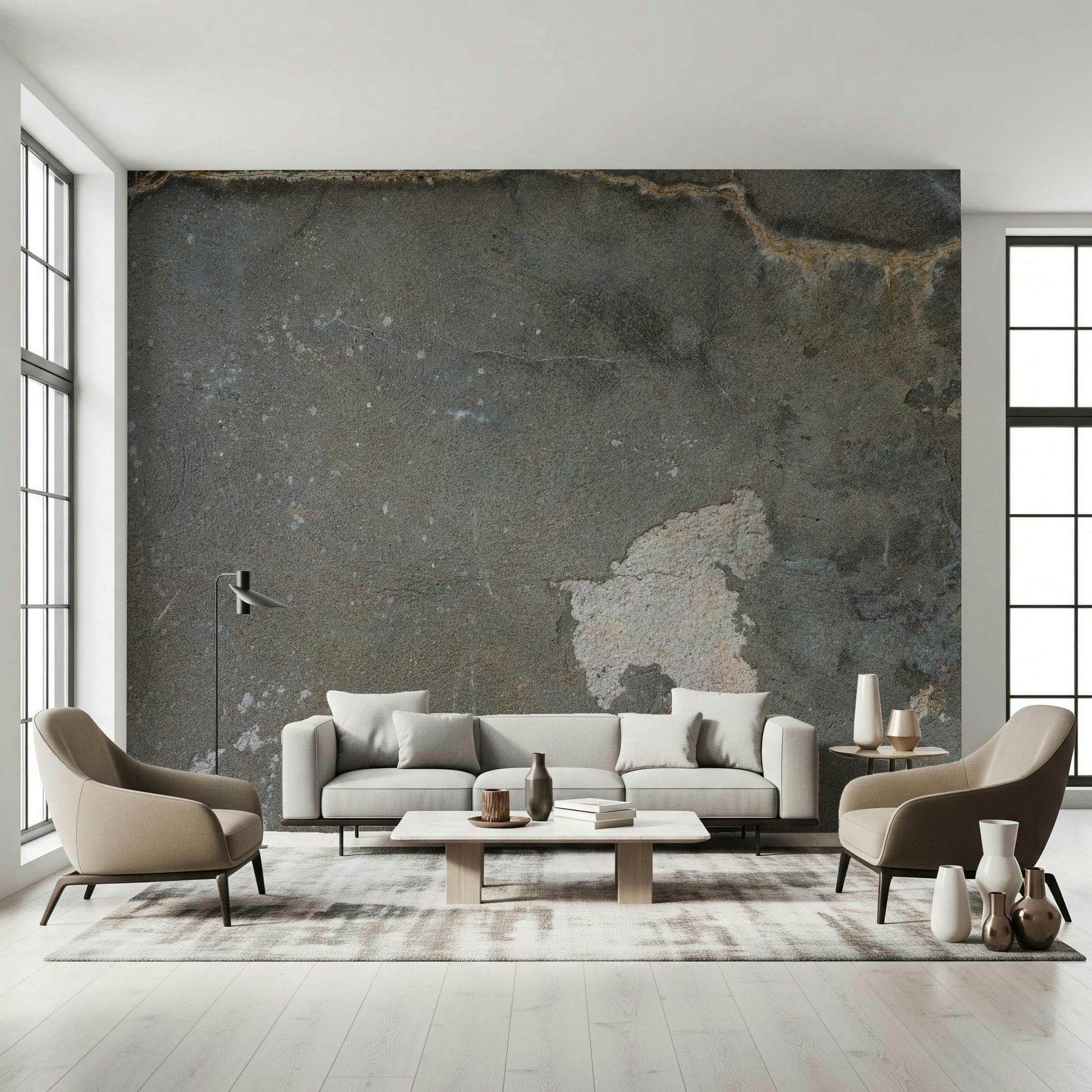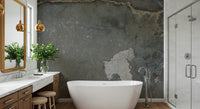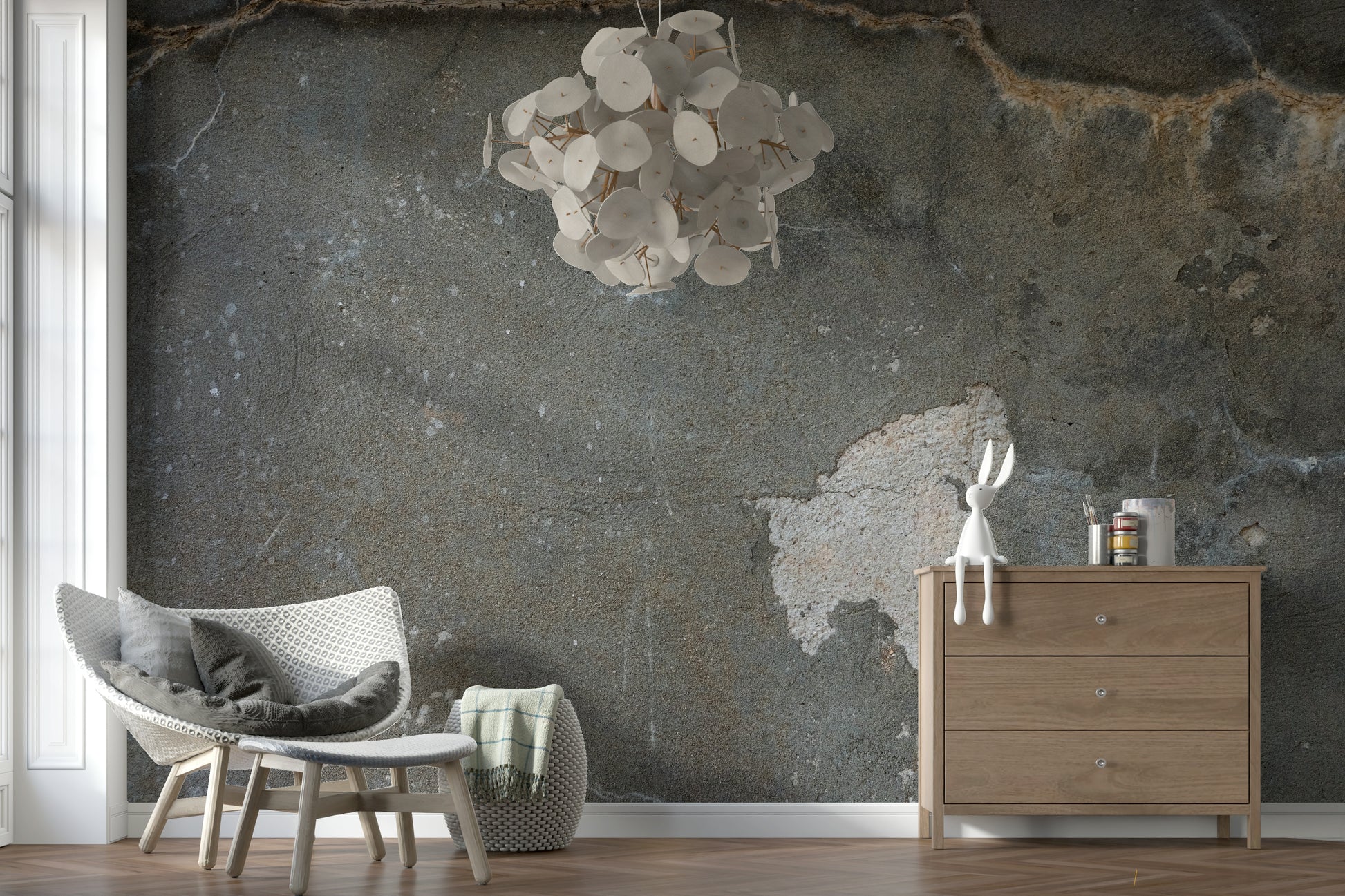 This wallpaper features a distressed concrete pattern that simulates the look of aged concrete. Its cool gray tones and slight imperfections add dimension to walls. Utilize this wallpaper for walls in any space looking to achieve an modern and urban ambiance. It enhances the overall aesthetic by complementing sleek, minimalist interiors with touches of metal.