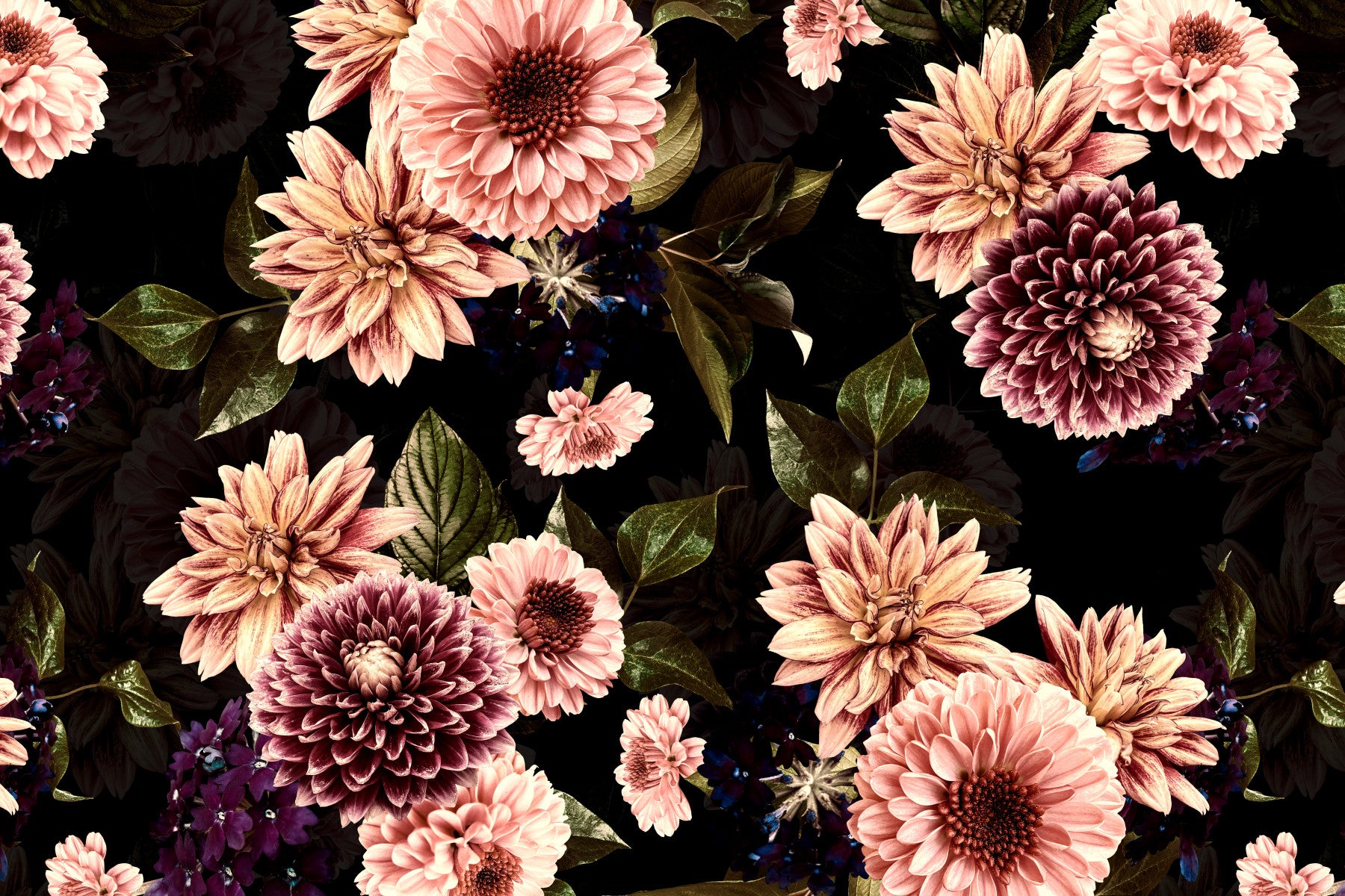 Vintage Flowering Dahlia Night Garden Wall Mural