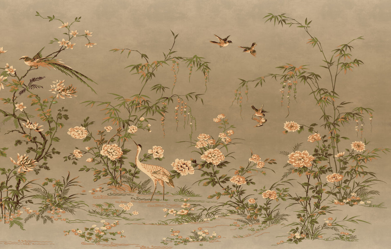 Elegant Chinoiserie Bird Wallpaper