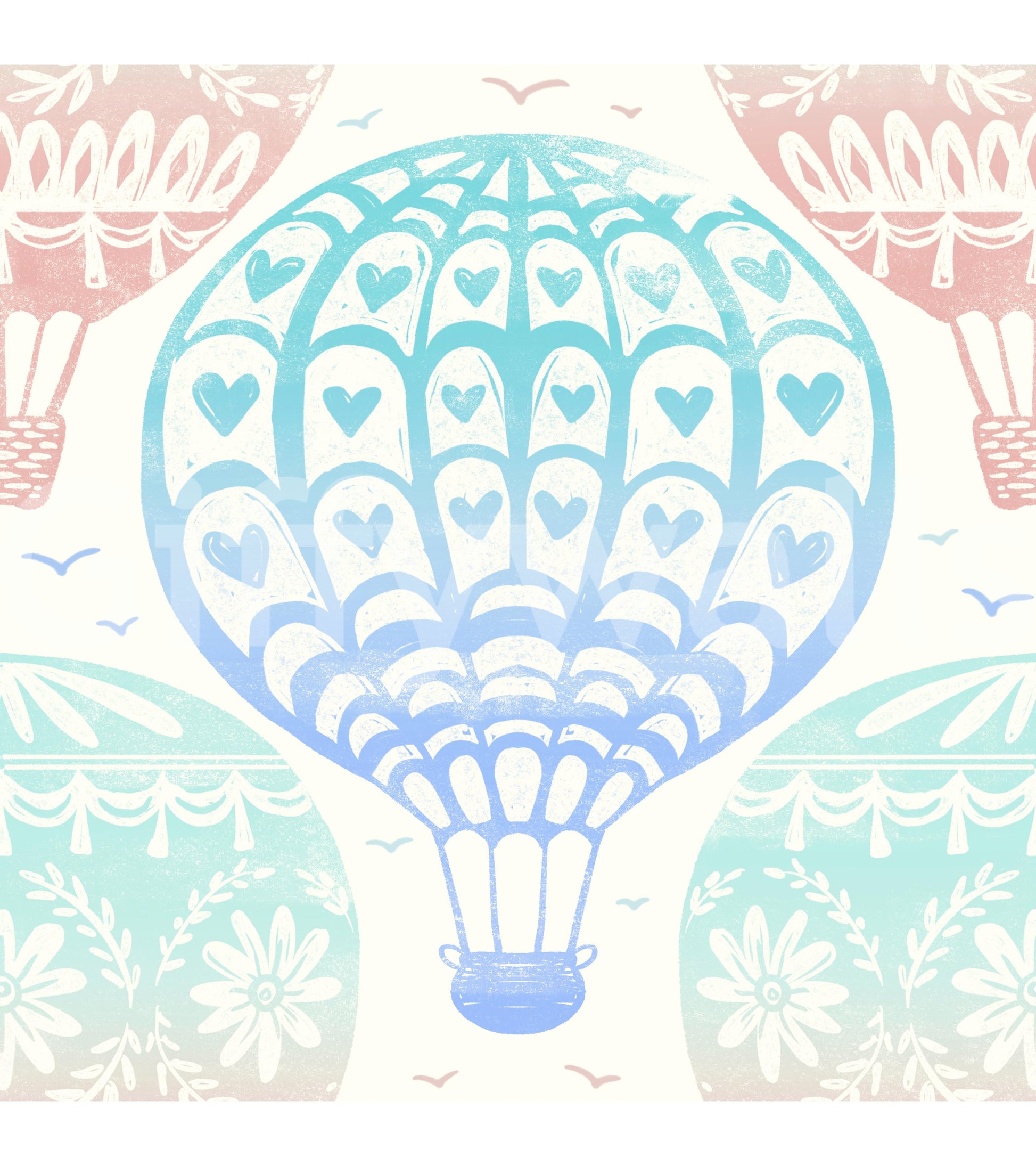 Air balloon wallpaper with floral patterns