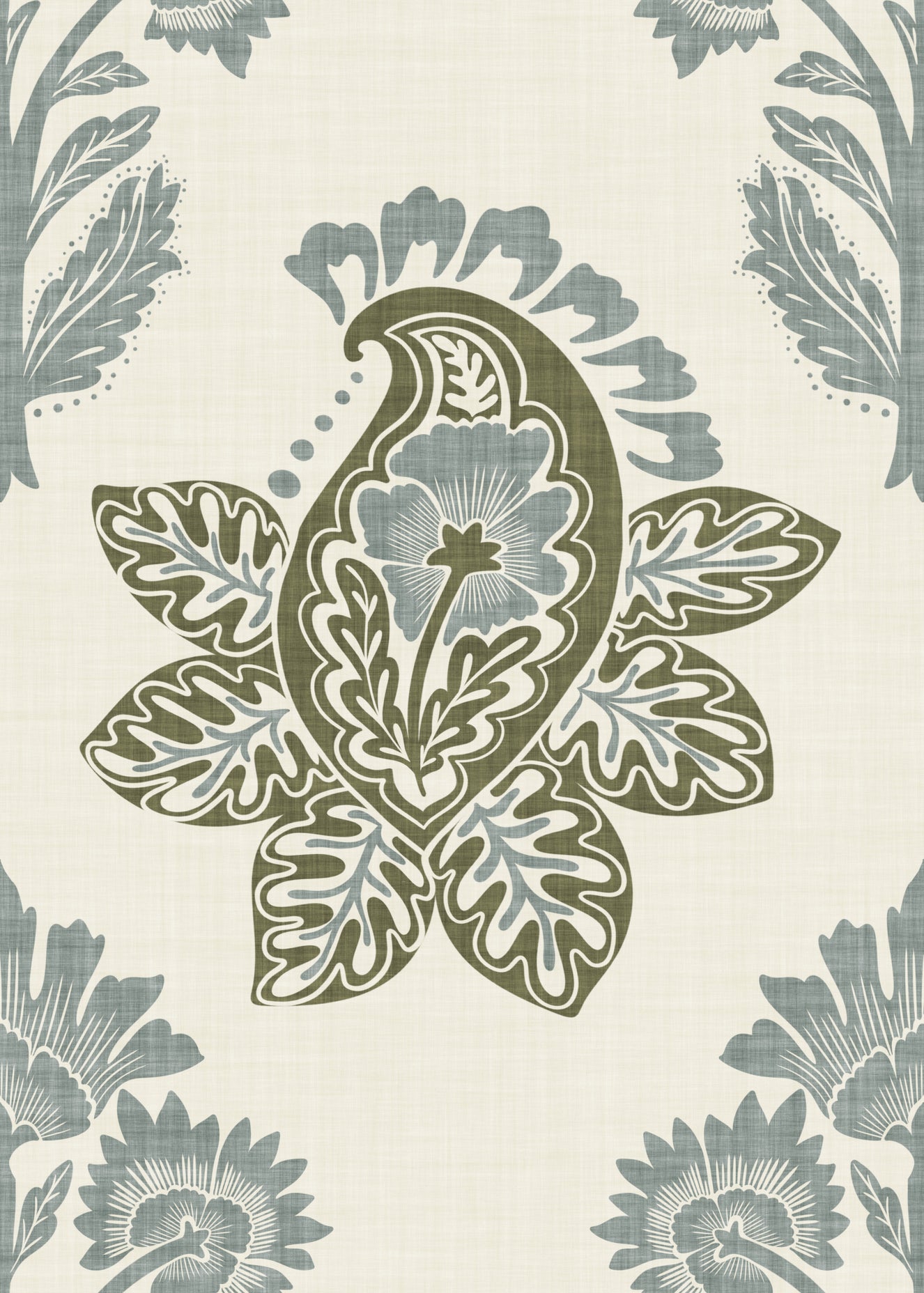 Detailed floral wallpaper in terracotta tones for a rustic touch